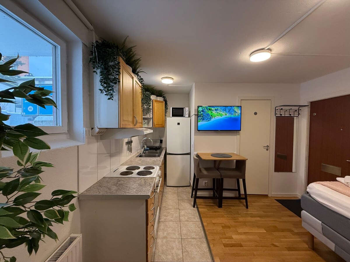 Detta unika boende ligger mitt i centrala Solna i ett hus byggt 1929 som består av tre lägenheter. Huset är omgivet av en grönskande trädgård med mycket blommor och fina platser att fika, ordna grillmiddag eller ta ett glas kvällsvin. Lägenheten har egen ingång från trädgården och är nyrenoverad och i fint skick. Köket är fullt utrustat för två personer med både diskmaskin och tvättmaskin/torktumlare. WI-FI och TV med Canal-Digital ingår. Gratis P-plats på tomten.