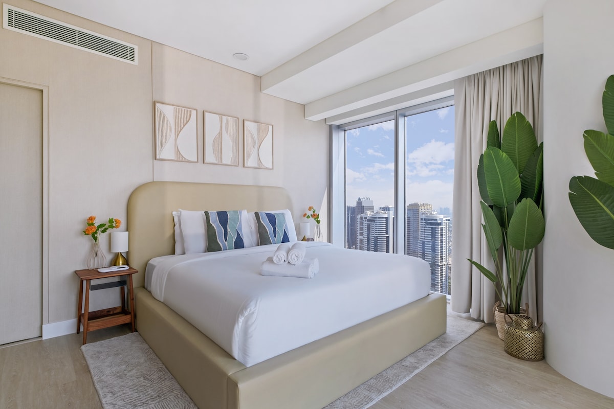 두바이 스카이라인 & 버즈 칼리파 전망이 보이는 세련된 침실 1개