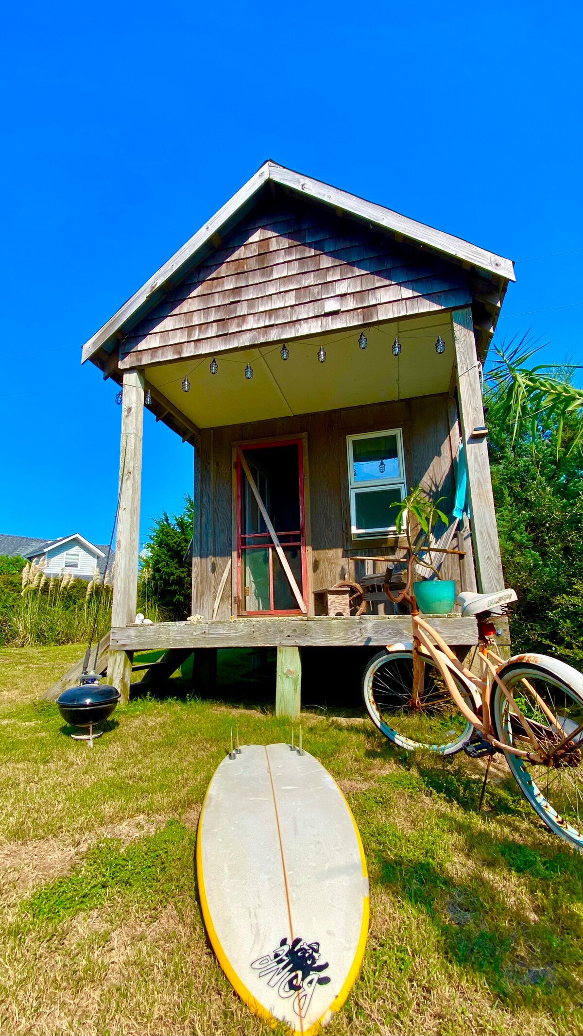 Welcome to our intimate tiny home studio, the perfect retreat for couples seeking a peaceful getaway. Just a 10-minute drive to the beach, our cozy studio offers a serene atmosphere with all the modern comforts you need. The large outdoor area is a highlight, featuring an outdoor grill, fire pit, and shower, perfect for unwinding and enjoying nature. Whether you're basking in the sun, grilling a delicious meal, or relaxing by the fire, our tiny home promises a memorable and rejuvenating escape.