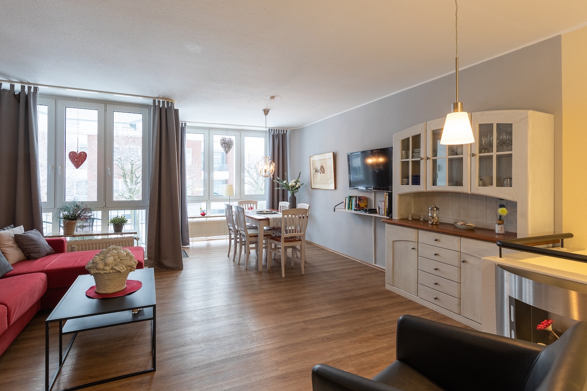 아파트 224는 콕스하펜에서 엘베 하구까지 바다 운송 도로의 환상적인 전망을 제공합니다. 식사 공간에 코너 벤치가 있어 멋진 전망을 감상할 수 있습니다! 북동쪽을 향한 발코니는 아침 식사나 일광욕용으로 충분히 큽니다. 이 광고는 에어비앤비의 공지와 달리 스파 카드 비용을 포함하지 않습니다. 수영장과 사우나 이용은 임대료에 포함됩니다. 자세한 내용은 '더 보기'에서 확인하세요.