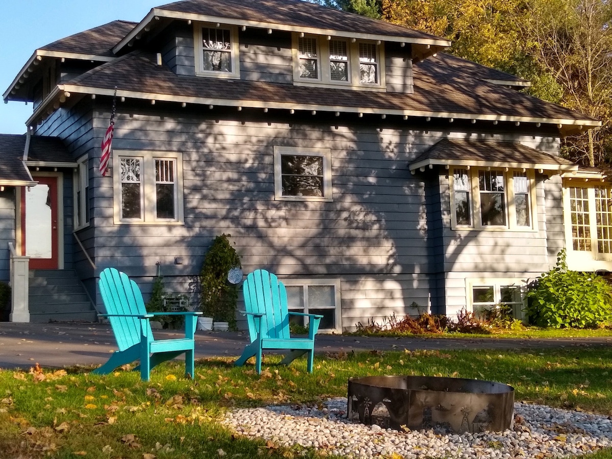 The Crossroads Inn is near downtown Allegan Michigan. This wonderfully well-kept home built in the 1920s is at the busy intersections of M-89, M-40 and M-222. It is within walking distance of downtown or just minutes from any business in Allegan. Thirty minutes to South Haven and Kalamazoo. Walking distance to the Allegan County fairgrounds. If you need a central location for work in Western Michigan or a weekend getaway, the Crossroads Inn is your place to stay. Weekly and monthly discounts!