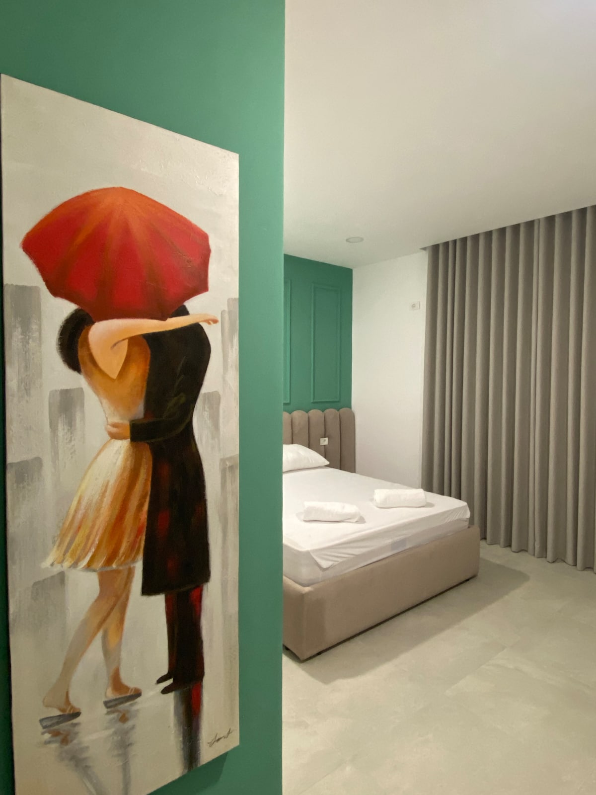 Enjoy modern comforts in a charming setting. Relax in the living room, cook in the well-equipped kitchen, and sleep soundly in the queen-sized bed. Nestled in the prime Durres Beach area, our Airbnb offers unrivaled convenience. Just a leisurely 2-minute stroll lands you on the sandy shores, while essential groceries and a handy supermarket are a mere 1-minute walk. No car? No problem. A bus stop, only 3 minutes away, conveniently connects you to the vibrant city center.