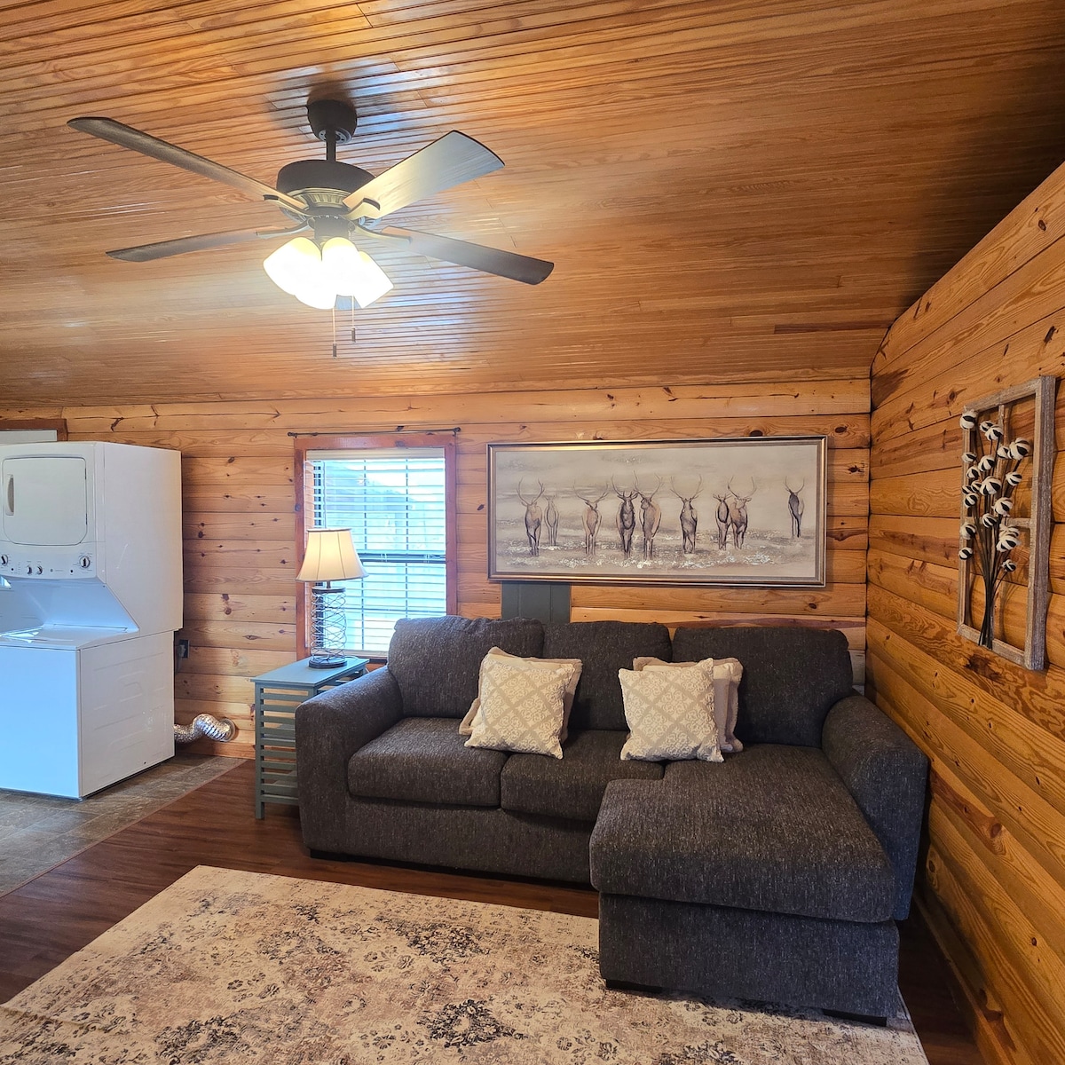 테네시주 다이어스버그의 시골 도로에 위치한 침실 2개, 욕실 3개가 있는 통나무집은 다음 휴가를 위한 완벽한 은신처가 될 것입니다. 마스터 침실에는 트윈 침대 3개와 퀸이 있습니다. 현지 레스토랑, 쇼핑 등에서 10분도 안 되는 거리에 있는 한 층짜리 숙소입니다.  스트리밍을 위해 모든 앱에 로그인할 수 있는 스마트 TV와 함께 무선 인터넷을 이용할 수 있습니다. 세탁기와 건조기도 준비되어 있습니다!