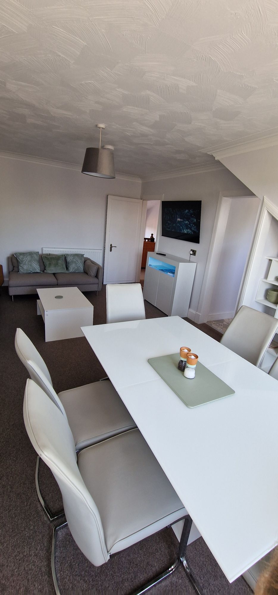 Welcome to your cozy coastal retreat in Prestwick! This modern upper flat is perfect for a relaxing stay in a quiet cul-de-sac, close to town. Two comfortable bedrooms—a double bed in one and a sofa bed for two in the other—a spacious living room, and a fully equipped kitchen, you’ll have everything you need. Just a 10-minute walk to the main street, a 2-minute stroll to a park, and short walk to the train station. 5-minute drive to the airport. Perfect for couples, families, or solo travelers!