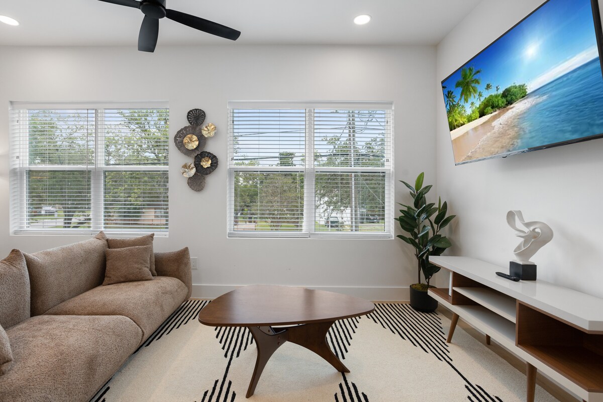 Clean home, beautiful decor, original artwork, gated parking/EV, central arts‑district location, fast WiFi. Enjoy luxury comfort in a central location near downtown Houston. • 5 min drive to downtown • 10 min to Galleria • 15 min to Medical District • Gated driveway • Full kitchen with cooking tools • Crib/high‑chair • 1 Gb/s fast internet • YouTube TV w/ ESPN, NFL Network, CNN, Univision • 65" TV in the living room and a TV in each room • Complimentary toiletries • Rain-shower "spa bathrooms"