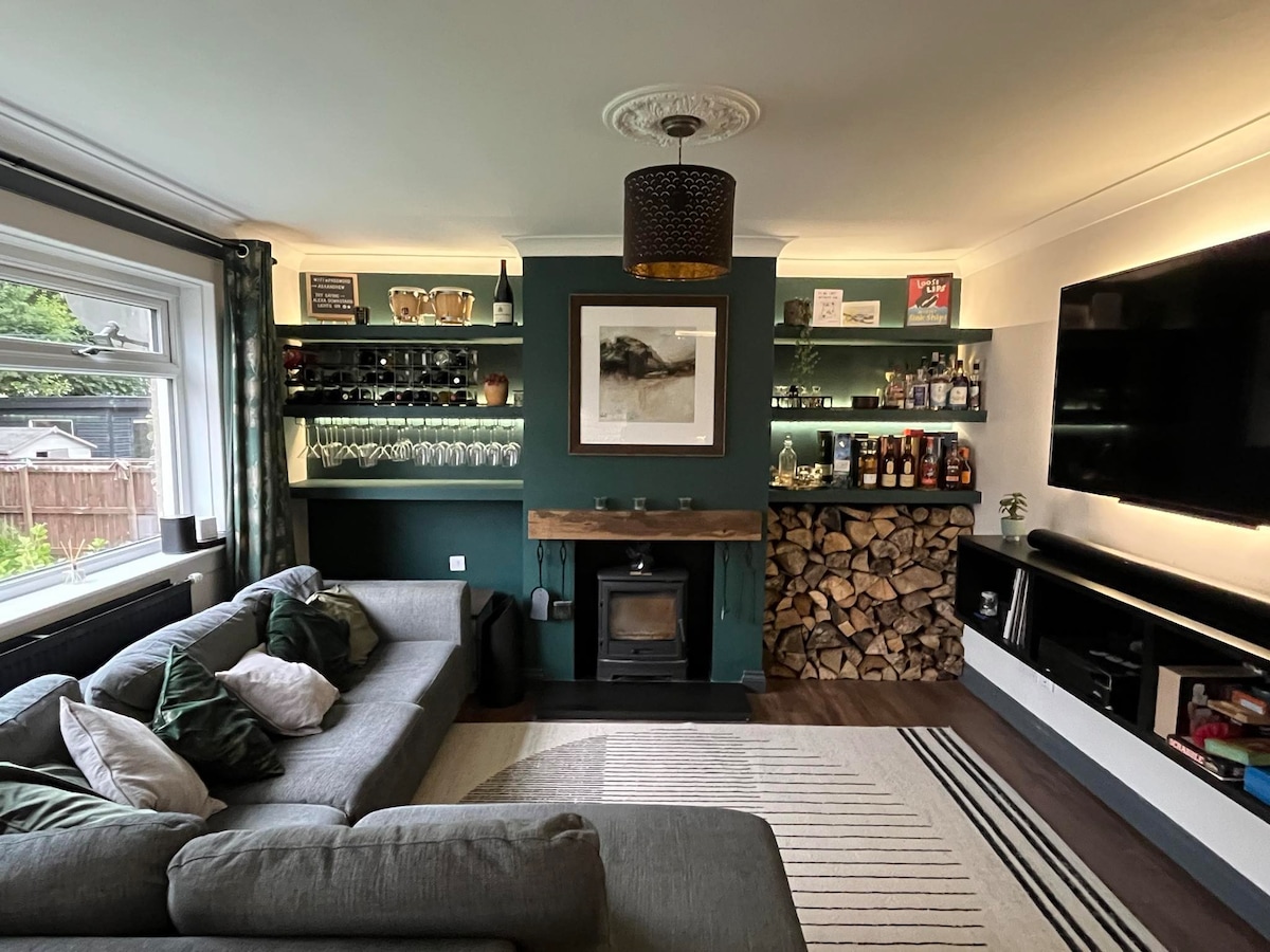 숙소에서 분리된 곳에 개조된 더블 차고가 있습니다. 고급 주방 시설, 냉장고, 냉동고, 호브, 와인 칠러, 전자레인지, 세탁기가 구비되어 있습니다. 전기 샤워기가 있는 전용 욕실도 갖추고 있어 자립할 수 있습니다. 더블 침대가 있습니다. 차량 주차도 가능합니다. 플랫에는 스카이 Q가 있는 TV도 있습니다. 붙박이 옷장이 있고 수납할 수 있는 공간이 많습니다. 거실의 전기 난방기.