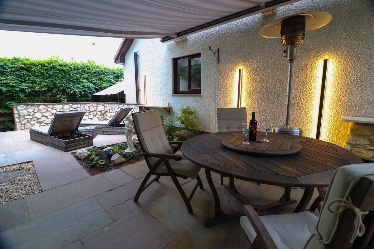라운지/작은 음식 준비 공간과 별도의 침실, 전용 욕실/전기 샤워기, 워크인 옷장이 있는 독립형 전용 별관. 라운지에는 이더넷/와이파이와 넷플릭스가 설치된 43인치 4K 스마트 TV가 있습니다. 커피 머신/우유 거품기, 냉장고, 전자레인지, 토스터, 휴대용 호브 및 주전자. 차/커피, 죽, 시리얼이 제공됩니다. 도착 시 남은 간식 - 페이스트리/비스킷, 과일 및 유제품. 전용 출입구/열쇠 잠금 정원/파티오. 장기 숙박 시 소량의 의류 세탁/건조.