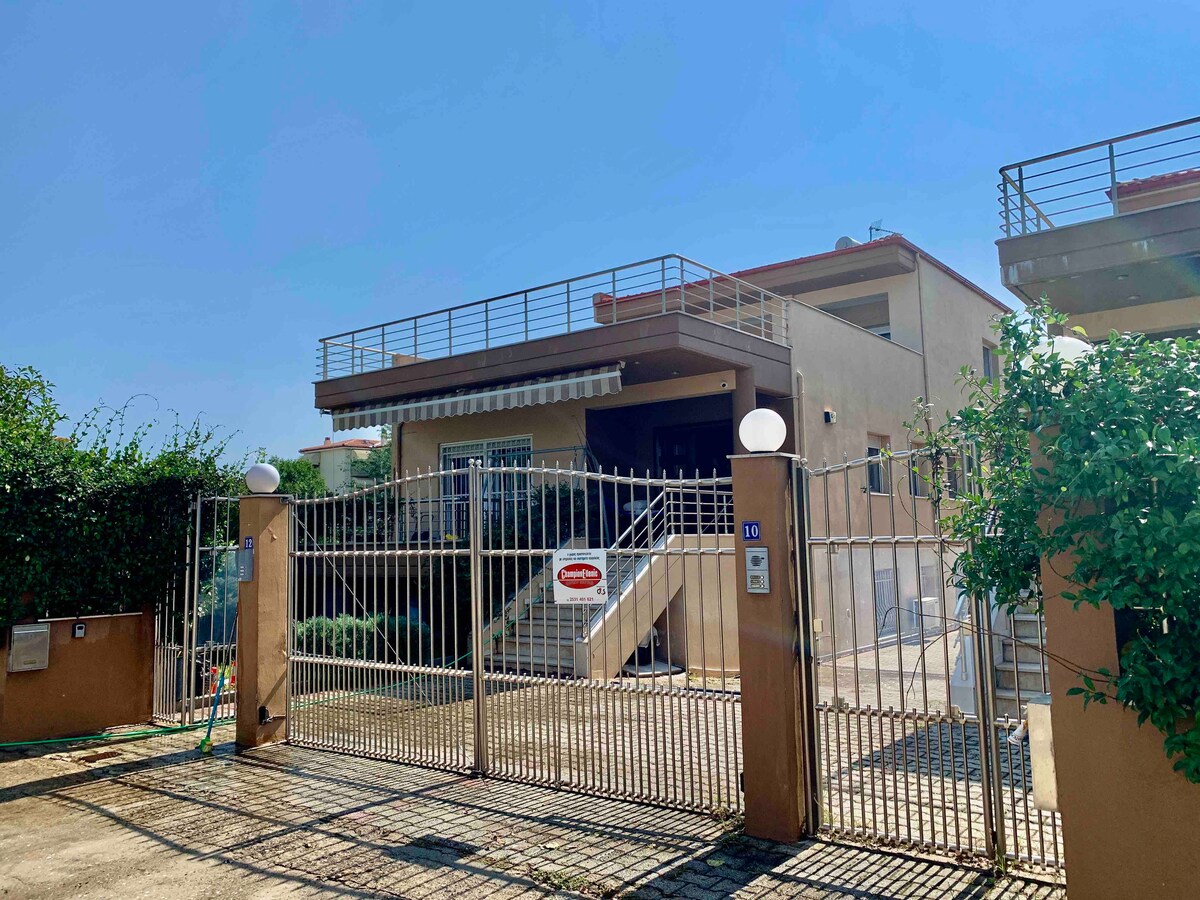 Enjoy the charm of Kavala from this stylish two-story maisonette, just 5 minutes from the beach and 15 minutes from the city center. With space for 8 guests, it features 4 queen-size bedrooms, a bright living area, and a large terrace with stunning skyline views. The fully equipped kitchen makes dining in easy, and fast WiFi keeps you connected. Located on the 2nd floor with no elevator, with a private garage for secure parking. Perfect for families or groups!