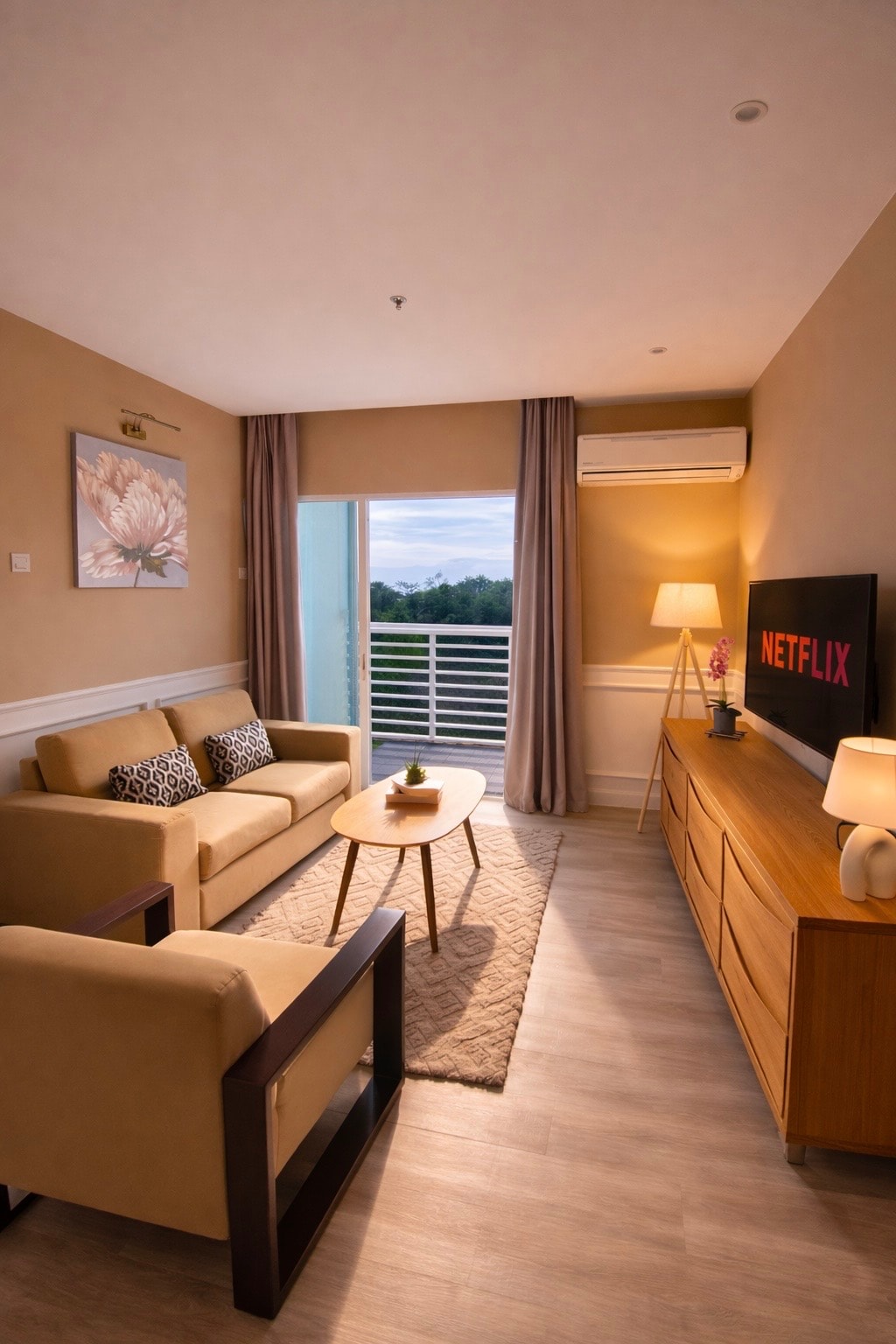 The ultimate holiday Airbnb unit, View of KK city, Gaya island, Sabah International Convention Centre. A romantic warm feeling of sunset view with a home living space, an elegant dining room, 2 beautiful bedroom and 2 modern bathroom, you'll have the ultimate suite experience. Spanning 701sqft, the Jesselton Suite also come with a complimentary Netflix, Disney Plus & HBO GO movie app for you to enjoy. 📌 6min walk to Jesselton Point 📌 9min walk to Suria Sabah