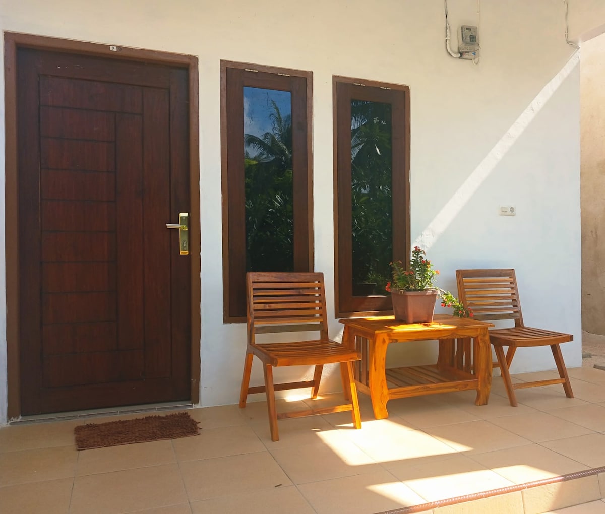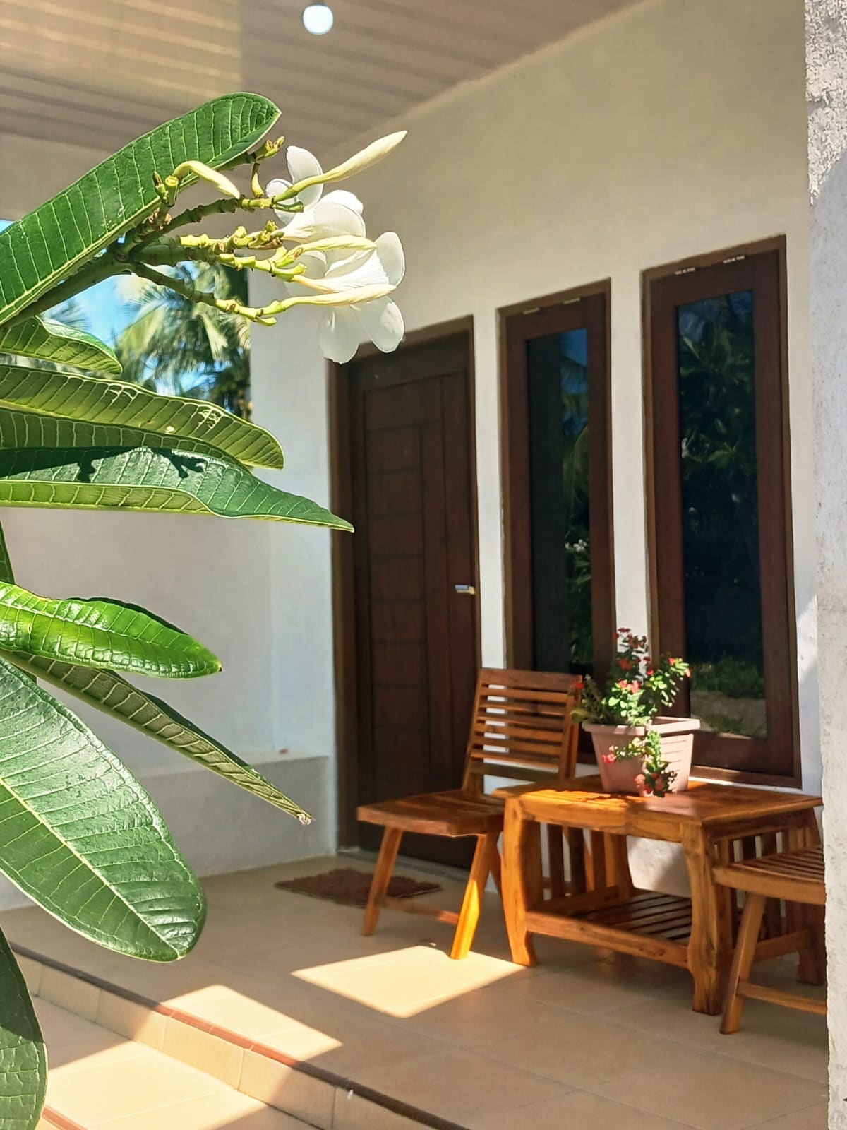Welcome to UME KELAPA Bungalow 1. A peaceful tropical retreat set on a spacious 3000 sqm property near the very heart of Nemberala. Surrounded by lush gardens filled with flowers and vegetables, this home offers privacy, space, and a true island-living experience while staying close to daily conveniences.