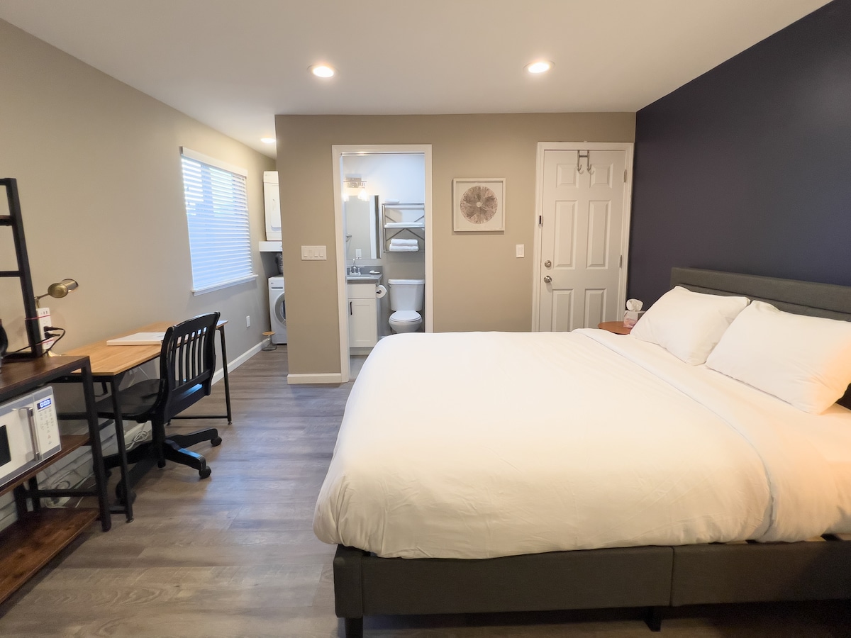 Visiting Seattle, Bellevue, Renton? Boeing for Work? This stylish place to stay is perfect for single professional. This studio with bathroom unit is fully renovated with simple but convenient amenities. 5 miles to SeaTac airport. 3 minute drive to 405 freeway. 5 minute to Boeing, Renton Landing and lots of shops and restaurants! 15 minute drive to Bellevue, 20 minute to Seattle. - Contactless check in with smart key. - Laundry in unit. Coffee maker, hot water, shower.