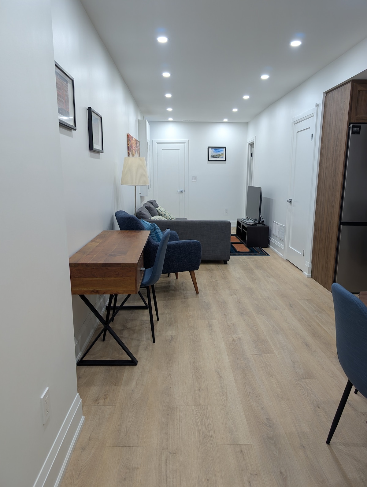 Enjoy a newly built, professionally designed, roomy 1-bedroom basement apartment in East York Toronto. Conveniently located near the Danforth, Woodbine Beach, parks, and trails, the apartment is a short bus/subway ride or a 15 min drive from Downtown Toronto. Self-contained and spacious, it offers a fully equipped kitchen, new laundry facilities, a queen-sized bed, ample storage, and plenty of natural light.