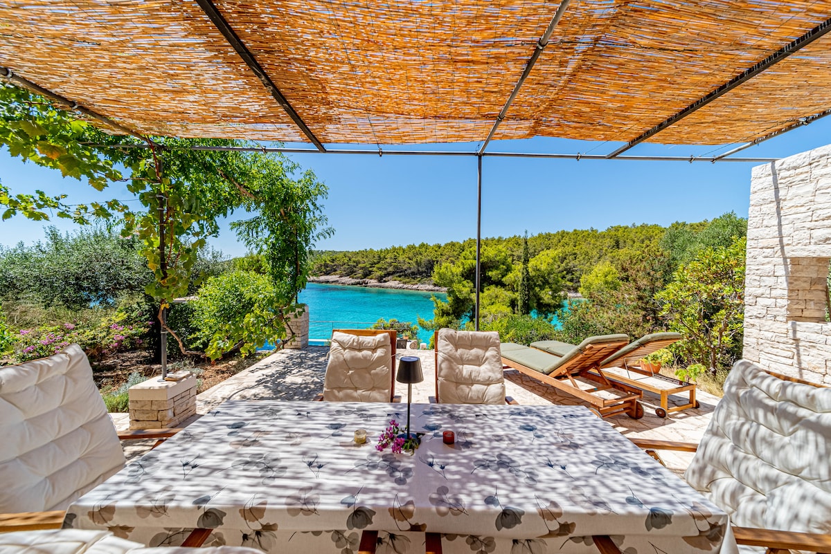 바닷가에 있는 지중해 파라다이스에 오신 것을 환영합니다! 해변에서 불과 10미터 거리에 위치한 이 아름다운 숙소는 고요하고 목가적인 휴식을 제공합니다. 숙소 자체는 전통적인 지중해 건축물의 증거이며, 주요 건축 자재로 시대를 초월한 아름다움을 자랑하는 흰색 돌로 지어졌습니다. 바다와 가까운 거리와 매력적인 디자인이 결합하여 비교할 수 없는 평온함을 선사합니다. 지중해 꿈의 휴가가 이 해안가 휴양지에서 기다리고 있습니다.