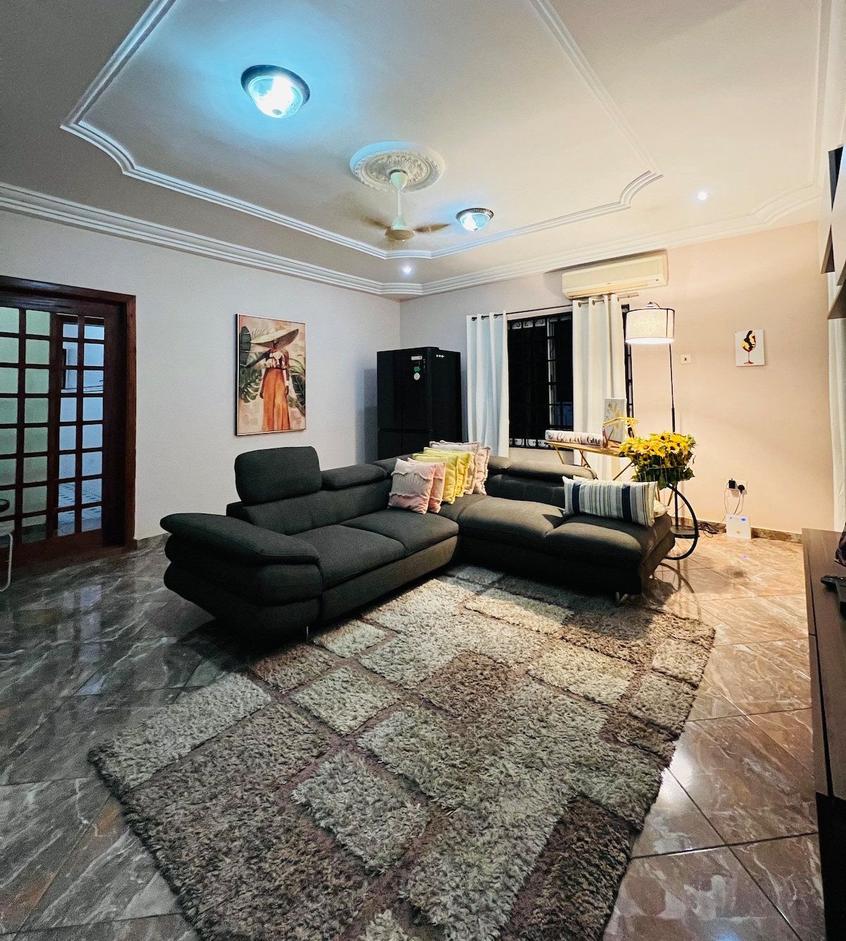 Welcome to Accra, Welcome to Ghana. This Airbnb is more than just a stay—it’s a cultural experience. Every piece inside was handpicked from Ghanaian artists and local markets, giving you a true taste of the city’s soul. Wake up surrounded by art. Step outside into Accra’s vibrant energy. Leave with memories that go beyond sightseeing. The entire luxury, beautiful, glamorous three-bedroom house is in a secure gated community, Adenta, Accra , 17km from airport)