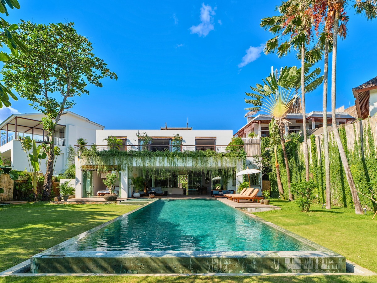 캉구의 중심부에 위치한 세련된 전용 오아시스인 빌라 토니로 떠나보세요. 에코 비치, 카페, 부티크, 서핑 명소, 가장 멋진 해변 일몰이 불과 몇 분 거리에 있습니다. 울창한 열대 정원 1,000㎡에 위치한 이 빌라에는 어린이 공간이 있는 멋진 인피니티 풀, 최대 10명까지 수용할 수 있는 우아한 침실 5개, 넓은 실내외 거실 공간, 세심한 직원이 있습니다. 발리에서 가족 휴가를 보내거나 잊지 못할 단체 숙박을 즐기기에 완벽한 곳입니다.