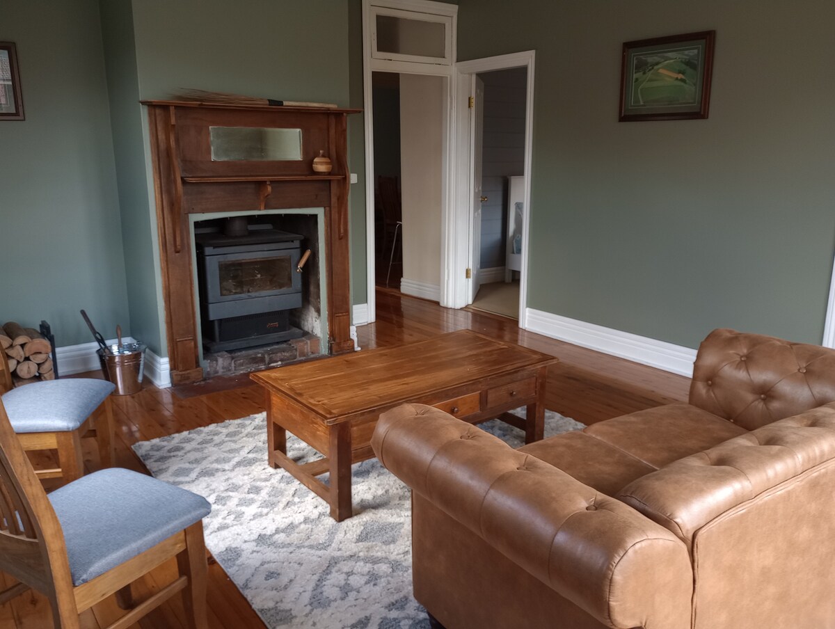 마을에서 불과 몇 분 거리에 있는 시골 생활을 즐겨보세요. 높고 아치형 천장과 천천히 타오르는 벽난로가 있는 고급 가족용 숙소. 넓은 침실 3개, 엔터테인먼트 공간, 세련된 주방. 6에이커에 위치하며 멋진 정원과 나무가 있습니다. 데이비드 오스틴 장미가 있는 넓은 정원 침대와 텃밭. 나무는 침엽수, 참나무, 꽃 체리 등이 있습니다. 키 큰 오리지널 유칼립투스 나무가 프라이버시를 제공합니다. 사적이고 아름다운 시골 지역에 있습니다. 완벽한 주말 휴양지입니다!