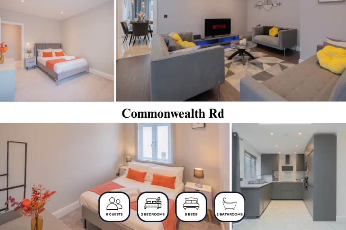 현대적이고 편안한 3베드룸 숙소로 여유로운 숙박을 원하는 가족 및 단체 여행객에게 적합하며, 게스트들은 이곳을 내 집처럼 편안하게 느끼며 칭찬합니다. 이 숙소에는 더블 침실 3개, 킹사이즈 침대 2개, 싱글 침대 2개가 있습니다. 또한 욕실 1개와 화장실 1개가 있어 가족 및 단체 여행에 이상적입니다! 숙소에서 도보로 7분 거리에 토트넘 홋스퍼 스타디움이 있으며, 도보로 13분 거리에 화이트 하트 레인 지상 역이 있습니다.