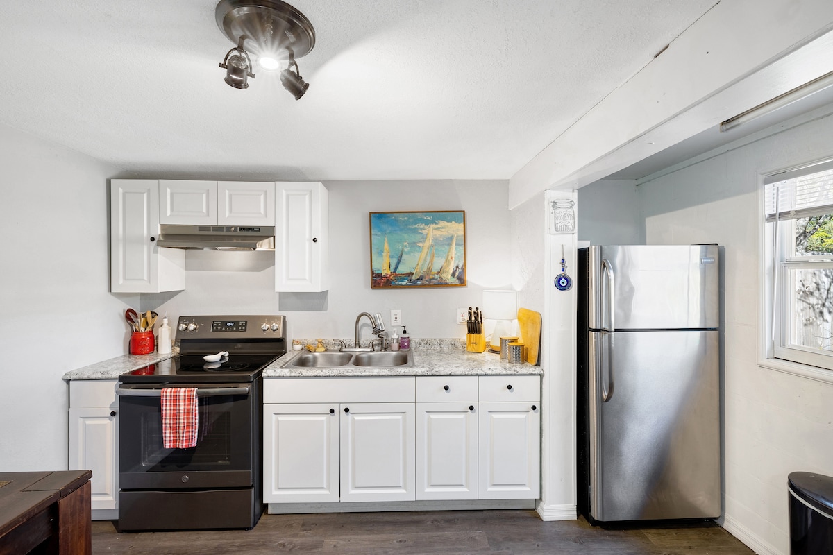 Welcome to this super nice 1 BR/ 1 (or 2) BA home 5 min. N of DT and 10 to beach. Fully remodeled, nicely furnished, solid block guest home with dedicated off-street parking at your door, fast Wi-Fi, Smart TV's, kitchen, private patio with gas grill, in a quiet walkable neighborhood, 3 blocks to a park with an outdoor gym. ADD 2nd Bath w 8 Jet Jacuzzi soak tub, bidet, vanity, and Washer/Dryer ($25 per day, $25 cleaning per stay). OR ADD just Washer/Dryer access ($15 single use).
