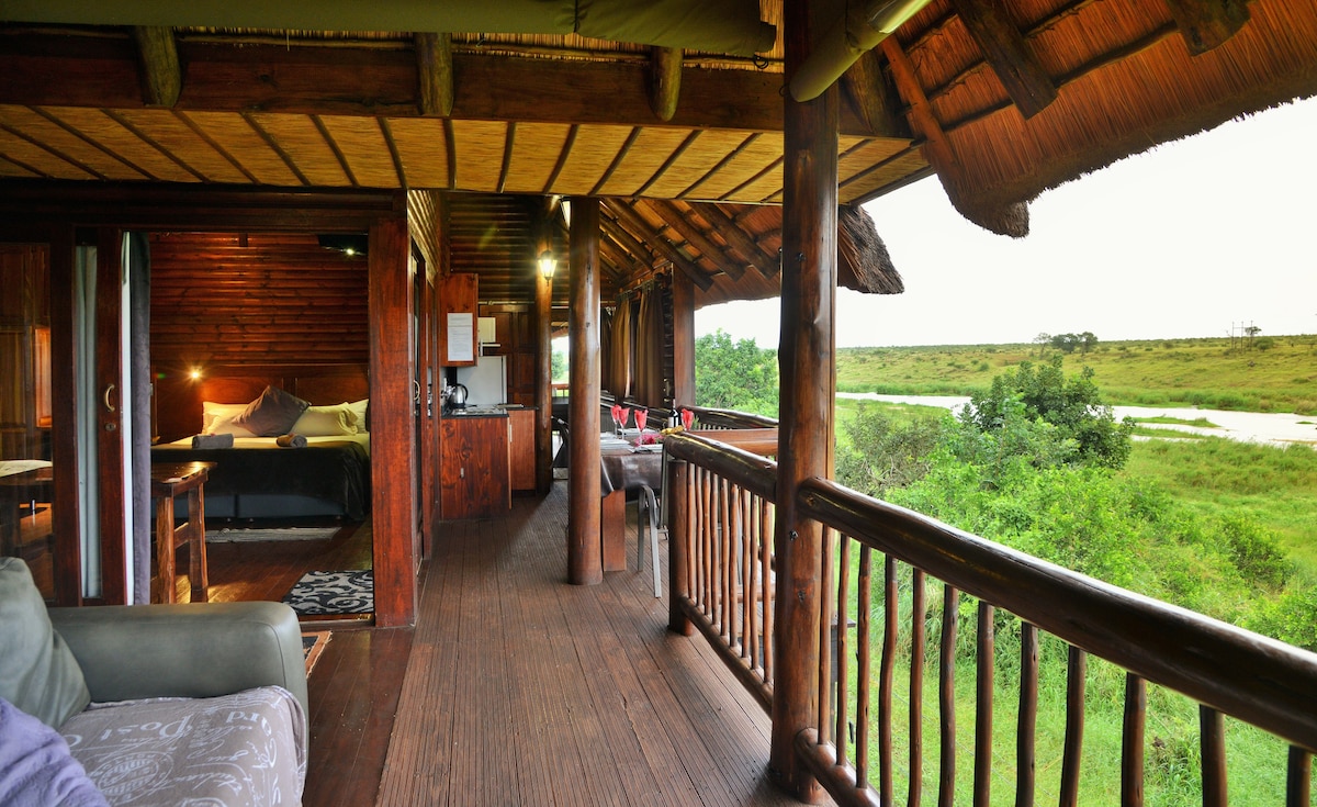 웅장한 올리판츠 강에 자리한 부시리버 산장의 독특한 워터프론트 룸. 침대와 욕조에서 멋진 강 전망을 감상할 수 있으며, 하마나 악어를 발견할 수도 있습니다! 큰 방 하나에 더블 침대와 싱글 침대가 있습니다. 개방형 욕실(욕조 + 샤워기). 메인 산장은 큰 주방과 모든 객실에 대형 냉장고가 있는 공용 공간이 있습니다. 엔터테인먼트 룸에서 시간을 보내거나, 수영장에서 휴식을 취하거나, 데크에 앉아 강을 바라보며 휴식을 취해보세요.