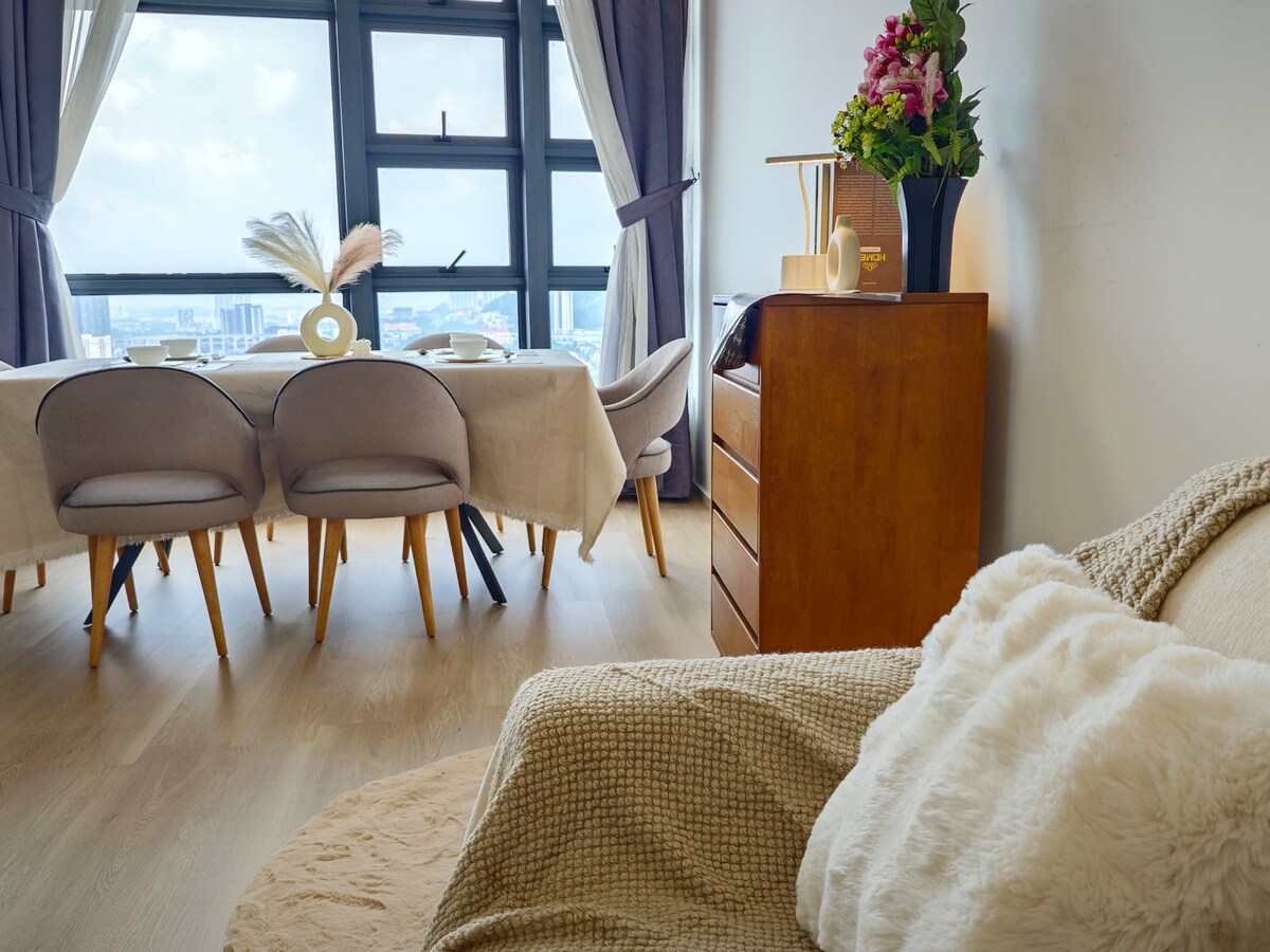 Why stay at Contemporary Suite at Lucentia Residence - the best views of KL - beautifully decorated with a fun spirit - centrally located - near public trans - fast wifi - 2 TVs with Netflix, Apple TV, Prime Video - 2 gorgeous pools - family friendly with baby crib & high chair - gym, pool table,BBQ pits, piano - garage parking - sleeps 3 max 5 - LalaPort Shopping Mall & the WOW entertainment street are attached - grocery, drug store, and many restaurants are attached - movie theatre GSC