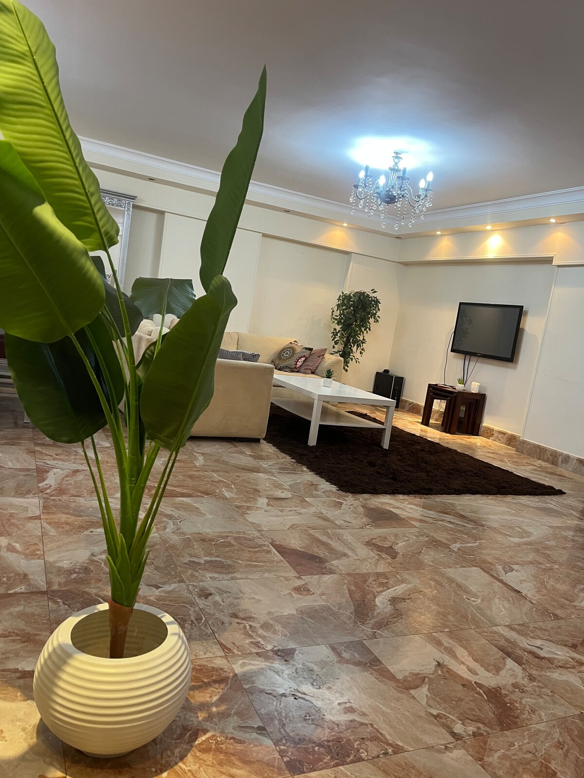 Welcome to our 3-bed, 3-bath, 220 sqm Maadi gem! Enjoy open views, a fully equipped kitchen, a 55" Smart TV, and lightning-fast Wi-Fi. Conveniently located near shops and restaurants, Carrefour and 50 Hub Mall are just 2 minutes away. Explore Maadi's charm and Cairo's attractions from this stylish and central retreat. Perfect for families or groups exploring Cairo's vibrant scene. No single male guests allowed. Ladies, Couples & Families only.