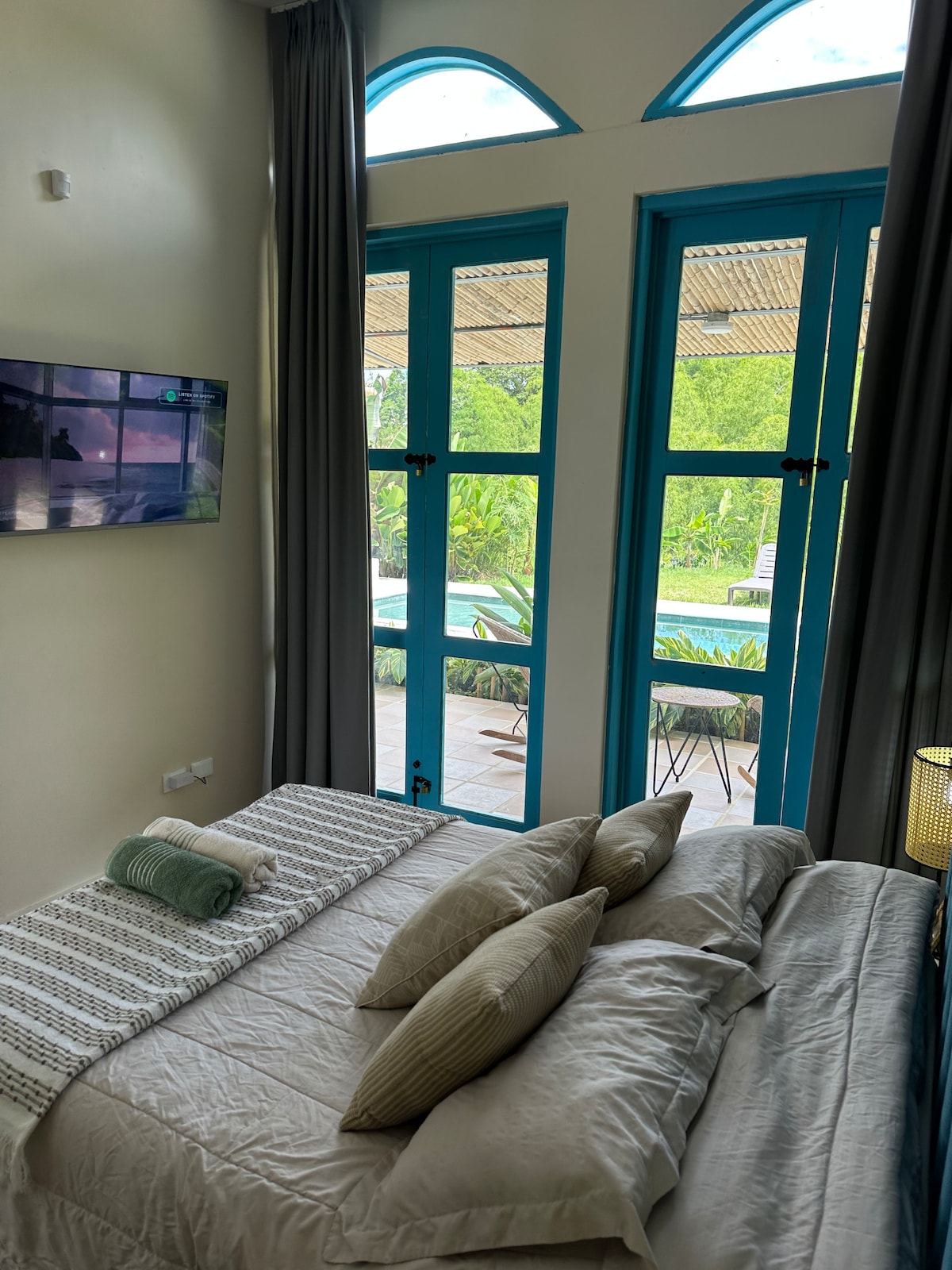 자연 속에 위치한 현대적이고 넓은 집; 보호 개념의 디테일과 인테리어 디자인에 특별한 주의를 기울입니다. 숙소에는 넓은 객실 2개(하나는 추가 둥지 침대가 있음)가 있으며, 각 객실에는 전용 욕실과 야외 샤워 시설이 있습니다. 넓은 거실, 가스레인지, 식기 세척기, 냉장고, 에어프라이어, 식기류가 구비된 주방. 넓은 테라스에는 편안한 온수 자쿠지가 있으며, 근사한 커피 농장을 마주하고 있습니다. 커피는 무료로 제공됩니다.