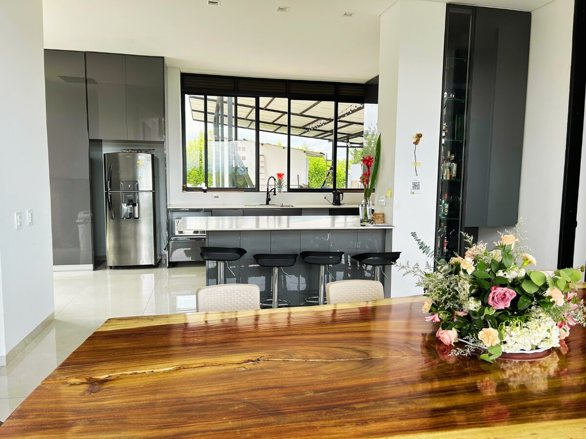 Mi casa es su casa! 숙소에는 전용 수영장, 주차장, 자전거, 바비큐, 에어컨, 프리미엄 4k 넷플릭스, 디즈니 플러스, 전통 개구리 게임이 있습니다. 파나카 공원이 근처에 있습니다. 첫 티켓으로 다른 날짜에 무료로 입장하거나 1일 티켓을 15% 할인받으세요. 그리고 불과 20km 거리에 파르케 델 카페가 있습니다. 또한, 가까운 거리에 있는 안전한 숙박을 위해 소유주와 직접 연락할 수 있습니다. 유연성과 신뢰를 위한 독립적인 체크인 및 체크아웃.