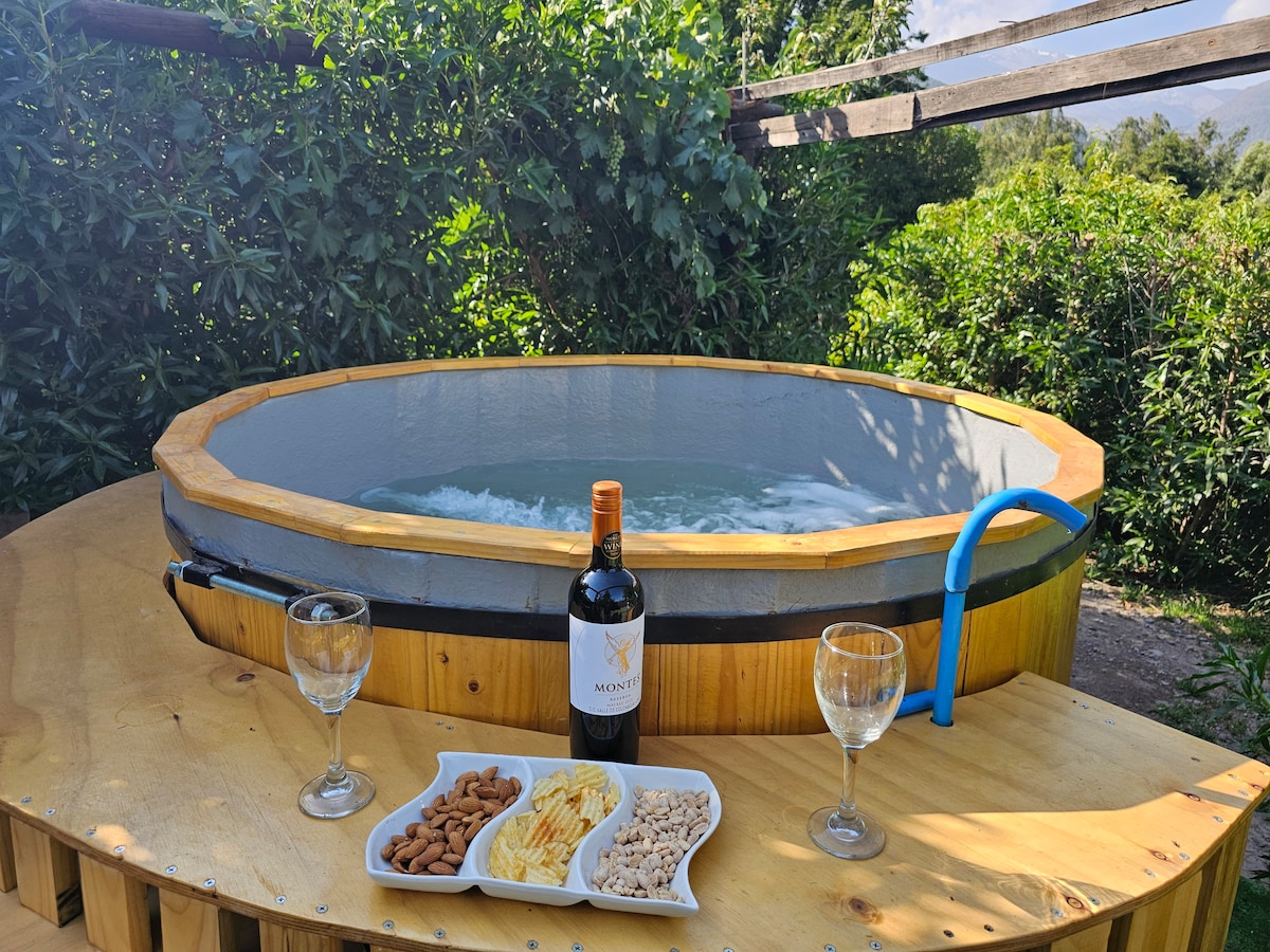 야외에 뜨거운 항아리가 있는 카혼 델 마이포의 아늑한 전원주택. 산장의 녹지로 둘러싸여 있으며 아름다운 산 전망을 자랑합니다. 하구와 강까지 걸어서 갈 수 있습니다. 와이파이와 게이트가 있는 주차장이 있습니다. 자동차와 대중교통으로 이동할 수 있습니다. -라스 비스카차스까지 차로 15분. 에어비앤비가 제공하는 기타 서비스: airbnb.com/h/cabrust2 잊지 못할 아름다운 풍경 속에서 자연과 하나 되는 시간을 가져보세요!