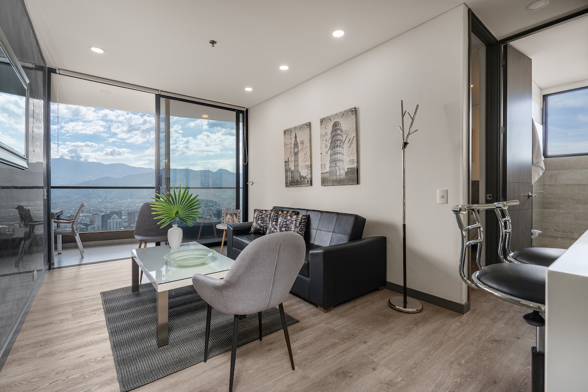 RECENTLY RENOVATED -High-speed internet great for remote work -Brand new A/C -Fully renovated Industrial design apartment -King size bed -Breathtaking views of Medellín (trust me, worthwhile to stay here) -19th floor -Unbeatable location in Poblado near to Provenza and Lleras Park -Modern amenities -Spacious living area -Smart TV x 2 -Fully equipped kitchen -Washer & Dryer Tower -Pool -Gym -Coworking space -Restaurant inside the building -Private parking -Self check-in -24/7 Security
