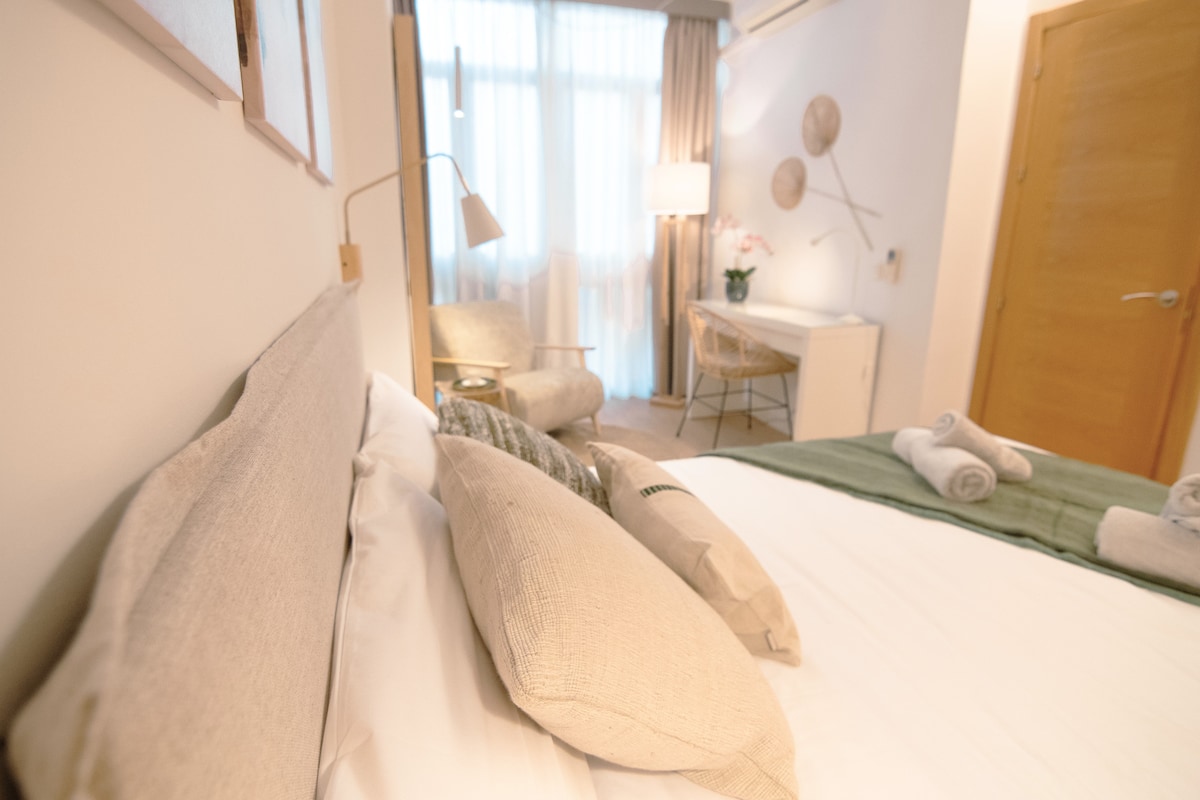 Los Ventanales, our classic 19th century two-bedroom home is centrally located in the very vibrant Old Town Malaga. Located between Calle Nueva and Calle Larios. Partly renovated, retains its original Juliet balconies with large windows and high ceilings, creating a bright and sunny space, offering a great view of the San Juan Church. The apartment is ln the middle of everything: shops, restaurants, sightseeing and a 15-minute walk to the beach.