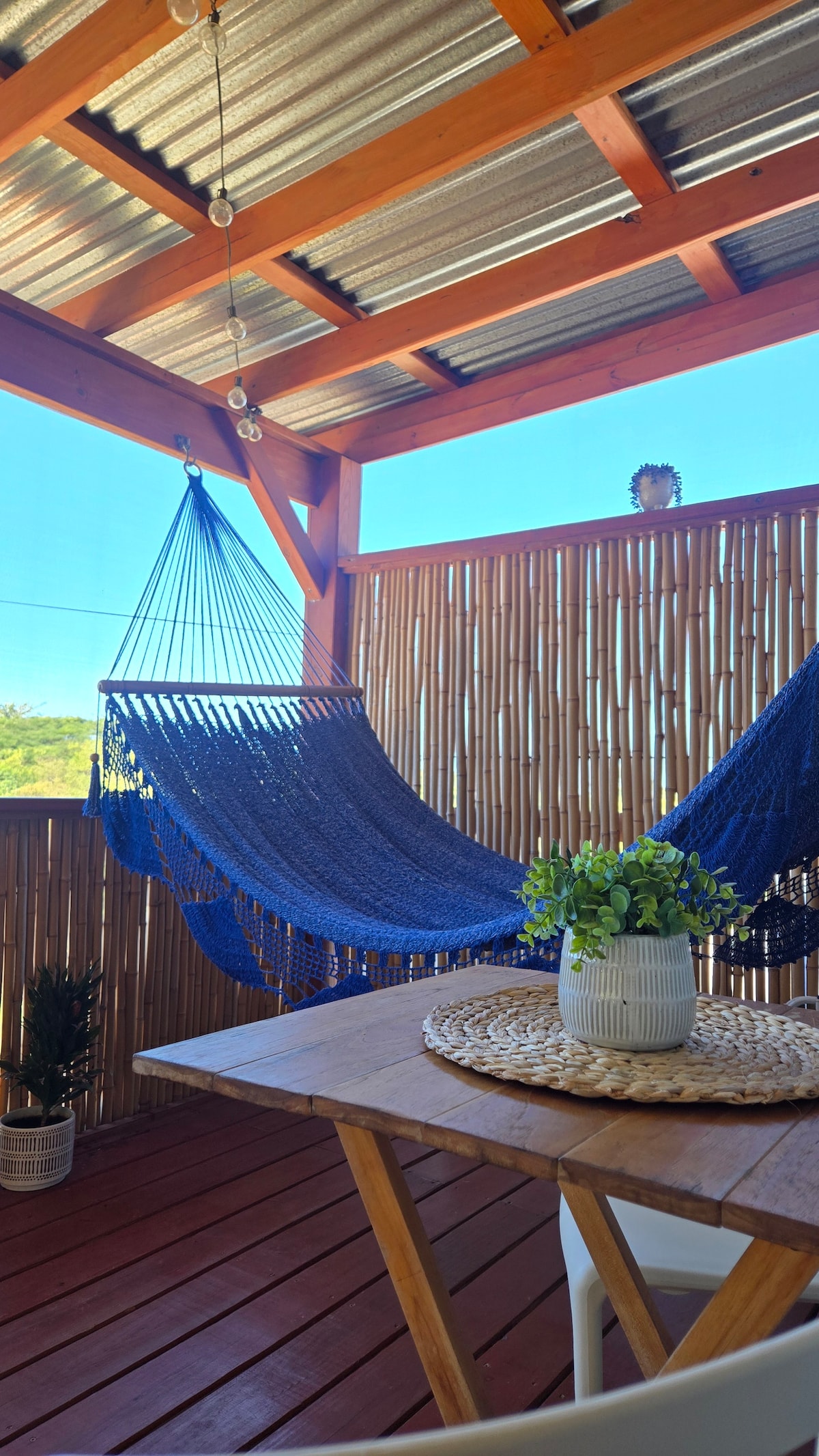 침실에는 에어컨과 스마트 TV가 있습니다. 이제 태양광 발전으로 운영되며 정전 시 대비할 수 있는 물 시스템이 마련되어 있습니다. 편안한 퀸사이즈 침대가 있는 저렴하고 깨끗하며 아늑한 침실 1개의 아파트. 완비된 주방과 노외 주차장. 햇살이 잘 드는 식물로 가득한 지붕이 있는 파티오에서 휴식을 취할 수 있으며 샌디 비치까지 단 몇 분 거리입니다! 친절한 가족 동네이며 모든 서핑 명소 근처에 있습니다. 저희는 위층에 살고 있으며 최고의 린콘 방문이 되도록 도와드리겠습니다!