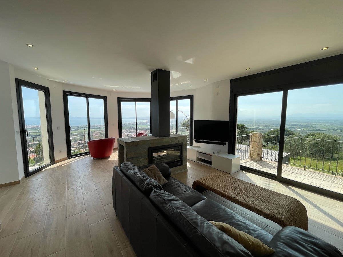 CASAZAZITA à Mas Fumats. Près de la frontière Française. Nouvelle villa à la décoration 'Majorquine' avec piscine, sur la route de Cadaques et à quelques minutes des plages de la baie de Rosas. La maison peut accueillir entre 8 et 12 personnes avec tout le confort: 6 chambres dont un studio avec 2 chambres, piscine privée, salle à manger d'été, multiples terrasses, vue mer incroyable de toutes les pièces de la maison. Internet professionnel. Un paradis...pour les familles. Climatisation 25€/jour