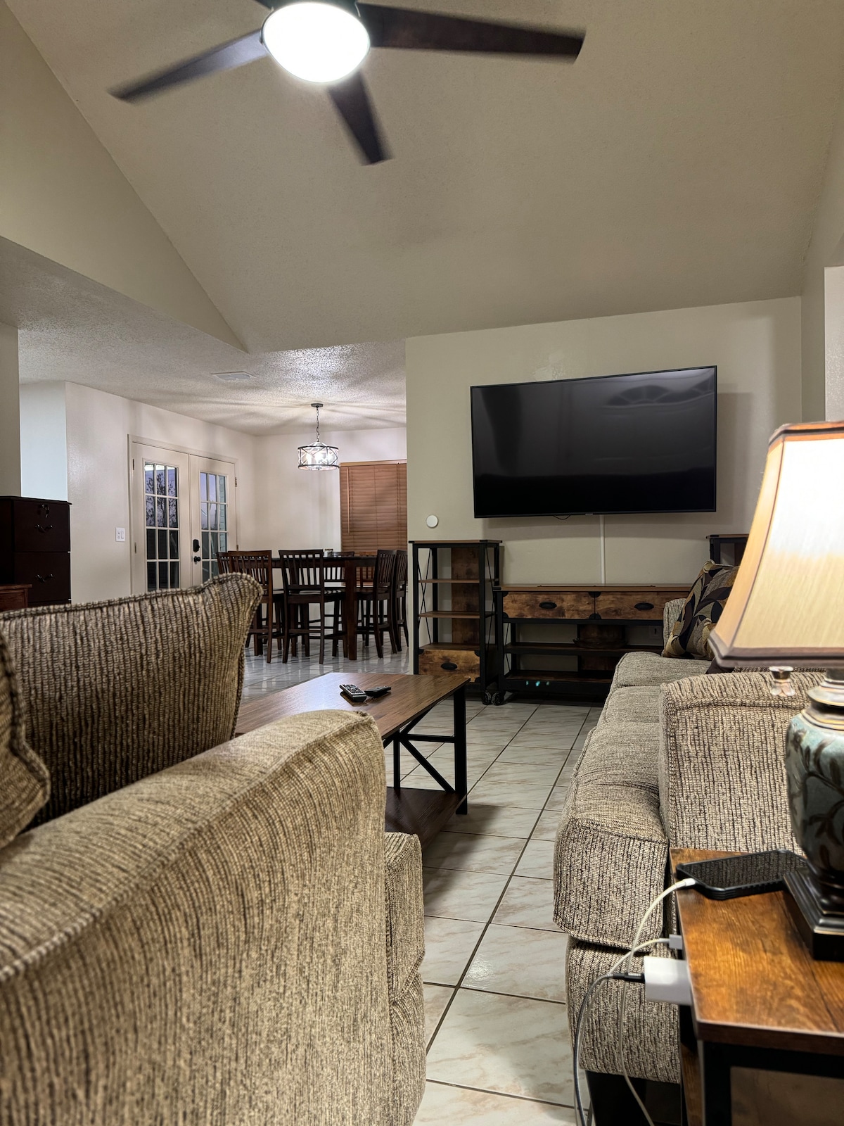 Experience comfort in our 4-bed, 2-bath Airbnb: -Master: King bed, private bath, walk-in closet, Smart TV, dresser, chest, nightstand -2nd: Bunk bed (full & twin), closet, chest -3rd: 2 twin beds, Smart TV, closet, dresser, nightstand -4th: Queen bed, Smart TV, closet, dresser, nightstand Enjoy a pool, spacious backyard, 2 BBQ grills, dedicated workspace with a computer, an 8-seat dining table, and a living room with a 65” smart TV. Fully equipped kitchen and laundry for a seamless stay.