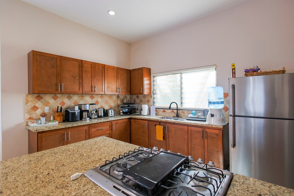이 중심부에 위치한 숙소에서 스타일리시한 경험을 즐겨보세요. 내부 및 외부 주방 2개, 파이어 핏, 선인장 숲의 놀라운 전망을 자랑합니다. 10분 거리에 바하 호스, 마를린, 바하 그릴 레스토랑이 있습니다. 산악 자전거, 카이트 서핑, 다이빙, 하이킹, 요가를 즐기기 좋은 곳입니다.