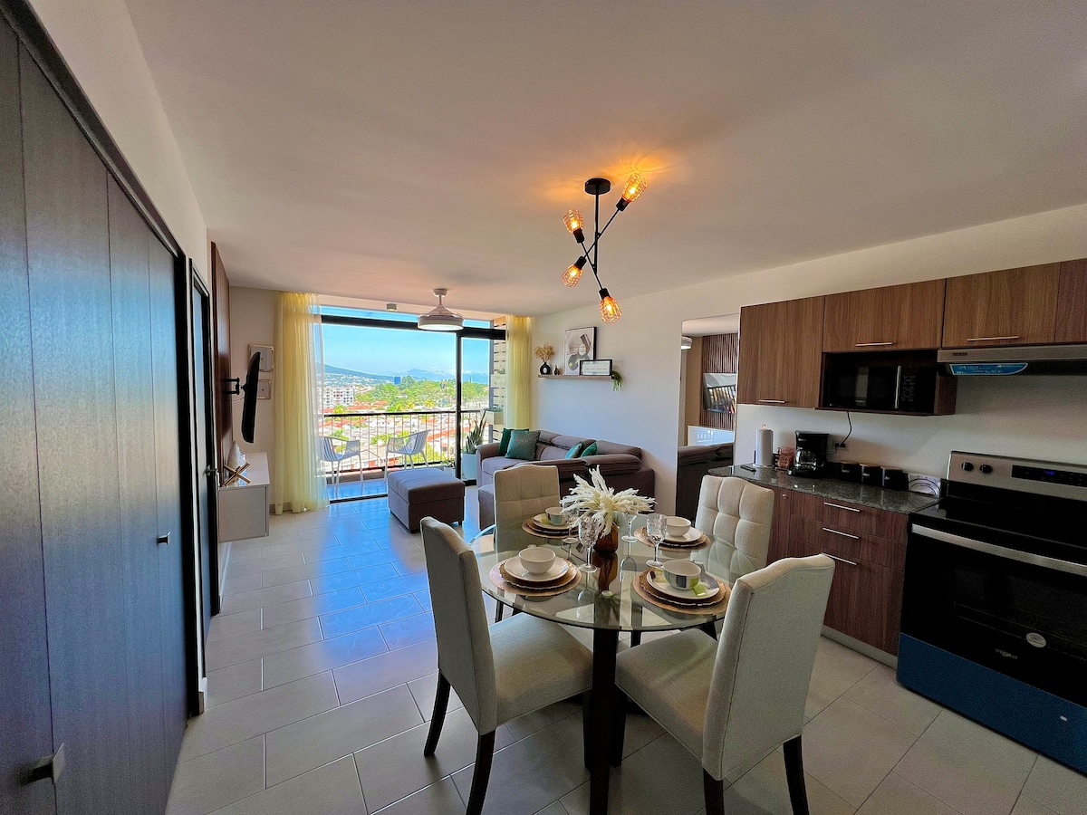 Apartamento nuevo, totalmente equipado y amueblado con una sola cama matrimonial, con decoración moderna pensado en garantizarte una cómoda y agradable estadía. Ideal para relajarte, disfruta de tu café por la mañana en la terraza con una gran vista a la ciudad o disfruta una copa de vino en la noche con la excelente vista a San Salvador. En una zona céntrica, estratégica y segura, cerca de supermercados, centros comerciales. A solo 40 minutos del Aeropuerto,