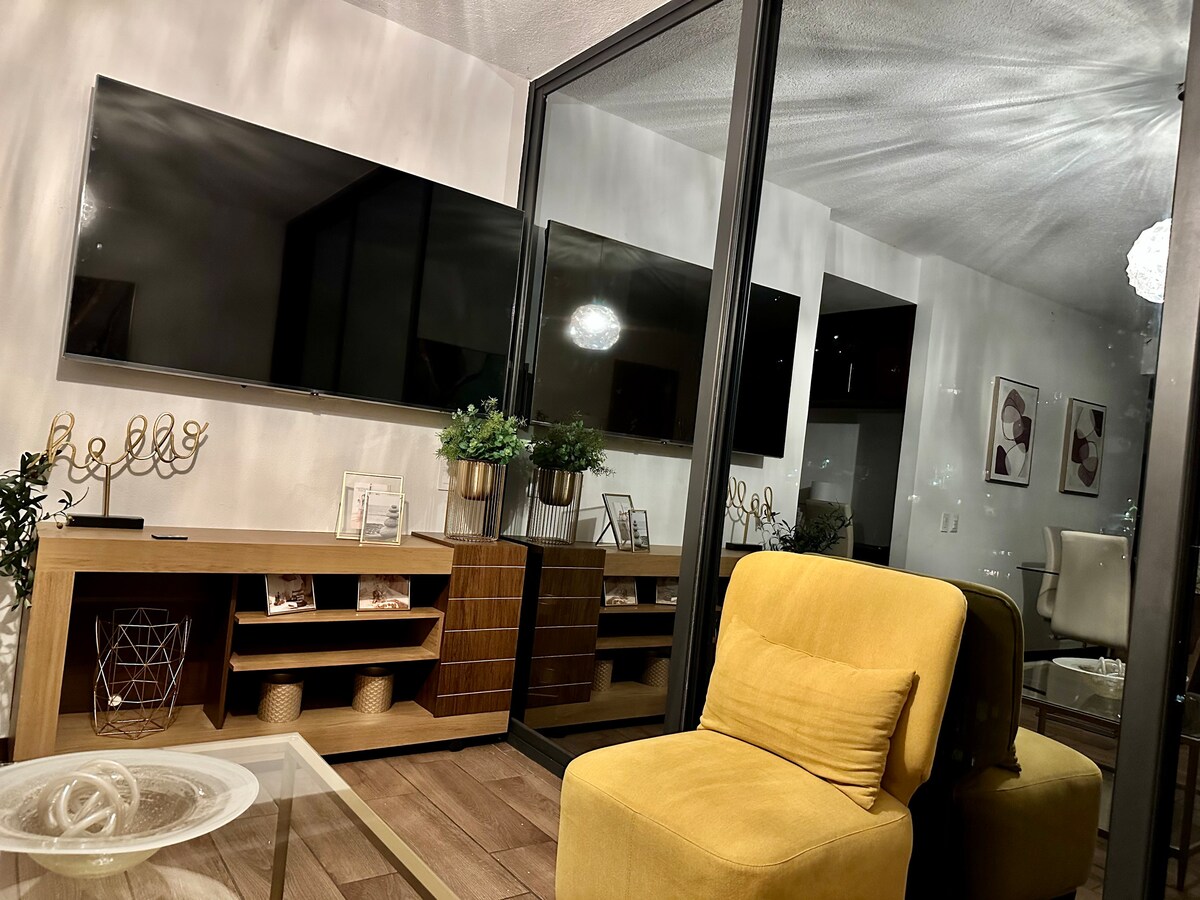Your Modern Home in Antiguo Cuscatlán ✨ Stay in a stylish 1-bedroom apartment on the 11th floor, offering breathtaking views of San Salvador. Perfect for business trips, long-term stays, or a secure and comfortable base while exploring the city. Includes: ✔️ King-size memory foam bed, blackout curtains, desk & chair for remote work. ✔️ Modern living room with 65" Smart TV, Alexa, and sofa bed (1.70m). ✔️ Fully equipped kitchen ✔️ Private balcony with panoramic views ✔️ Parking & high-speed WiFi