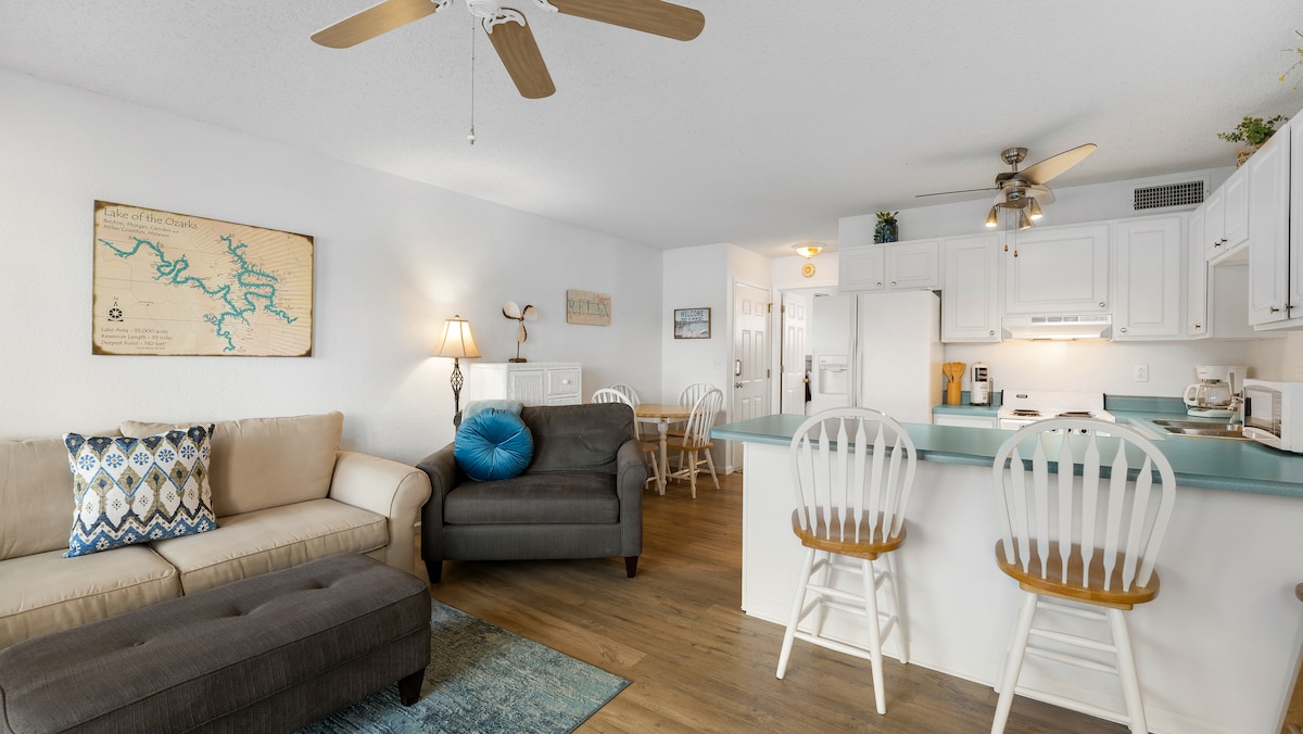 겨울 임대 특가 이용 가능! 성인 2명 및 어린이 2명에게 적합합니다. 멋진 위치! 고급 오세이지 비치. 호수 전면/이보다 더 호수에 가까울 수 없습니다. 호수의 멋진 전망을 즐길 수 있습니다! 부두에서 낚시하기. 농구 골대, 테니스 코트, 숨 막히는 호수 전망을 자랑하는 멋진 수영장. 전용 데크에서 물가가 내려다보입니다. 완비된 주방. 킹사이즈 침실 1개, 풀아웃 소파 1개, 킹사이즈 부풀려지는 침대 1개, 대형 TV 2개, 그리고 출입이 편리합니다. 레드헤드스, 골프 코스에서 가깝고 마가리타빌까지 2마일