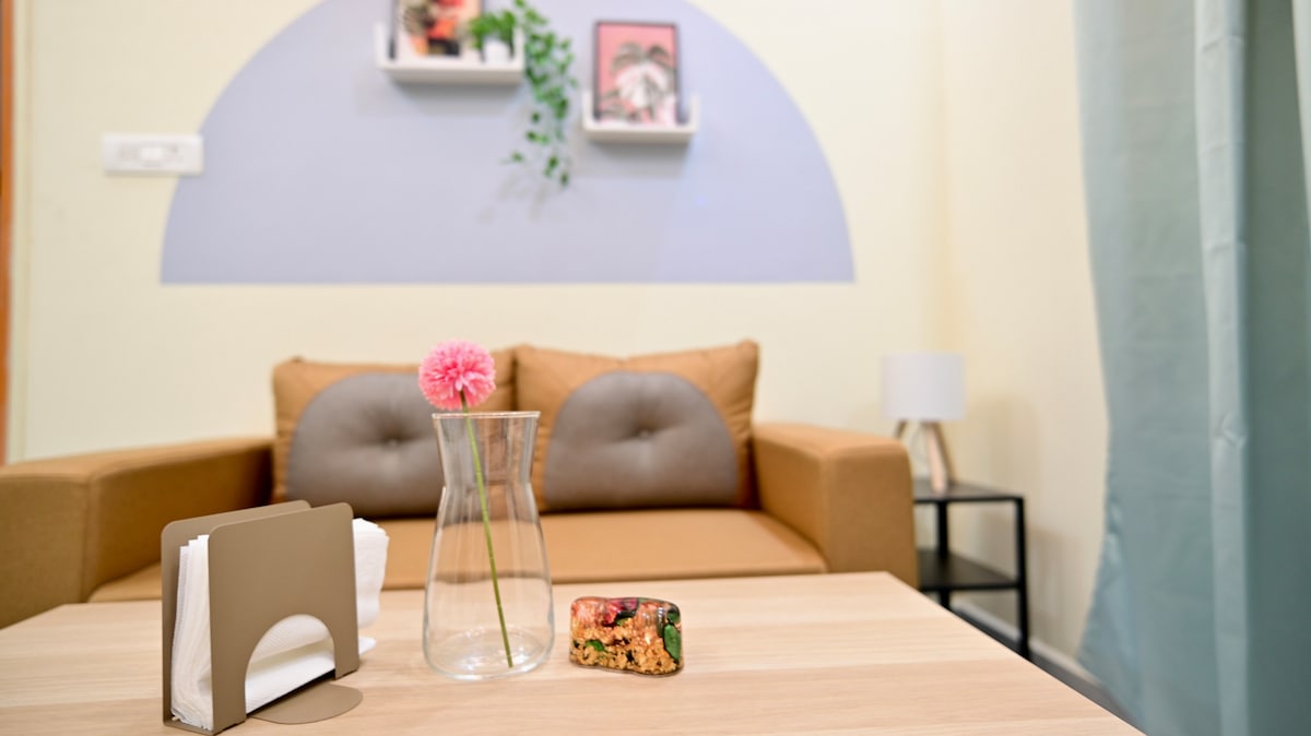 AJ의 스타일에 오신 것을 환영합니다. 따뜻하고 편안하게 지낼 수 있도록 설계된 아늑한 숙소입니다. 에어컨이 있는 침실, 와이파이가 있는 업무 공간, 주방, 화장실, 발코니가 있는 전용 1BHK를 즐겨보세요. 커플, 전문직 종사자 또는 1인 여행객이라면 편안하고 차분하며 편안한 숙소를 이용할 수 있습니다. 저희는 전자도시 1단지에 위치해 있으며, IT 공원, 카페, 펍, 쇼핑몰과 가까워 일과 휴식을 쉽게 조절할 수 있습니다. 집처럼 편안하게 지내세요. 회원님을 모시게 되어 정말 기쁩니다!