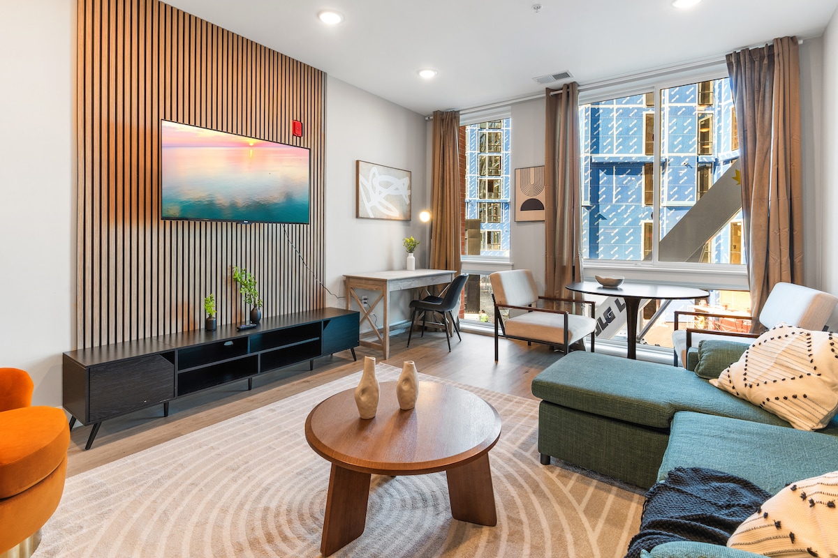 Studio, 1 Bathroom 1 Queen Bed Make yourself at home in the heart of Old City with a bright, open-concept space designed for easy city living. You’ll have a full kitchen for meals in, a cozy lounge setup for winding down, and in-unit laundry for longer stays—plus walkable access to Philly’s most iconic historic sights. Note: This is a lively city location—some street noise is possible. Not - stair free main entrance.