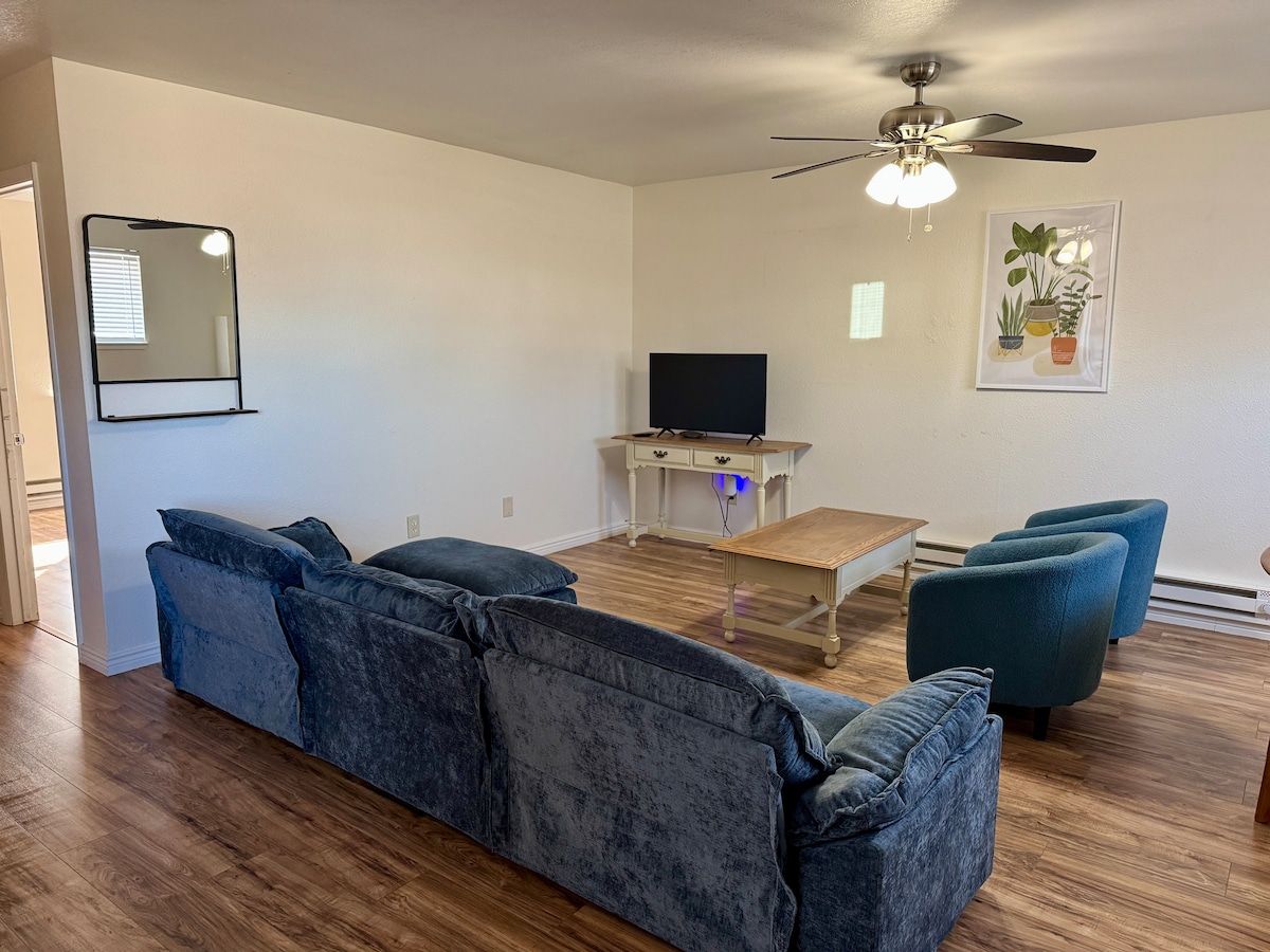 Make yourself at home in this 4 bedroom 2 bathroom house filled with lots of charm and character. Get settled in and enjoy a fully stocked coffee bar or perhaps a cocktail awaits as you relax near the electric fireplace or on the patio deck, surrounded by beautiful Aspen trees that change in appearance during the four seasons. A home where you can get comfortable, make memories with friends and family, and create a restful environment. We can't wait to welcome you!