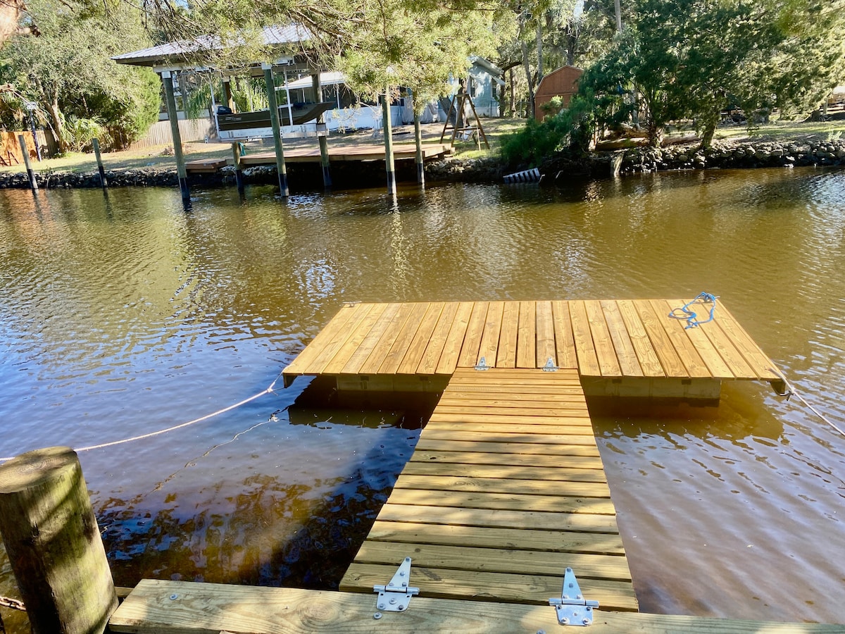 거대한 야외 바에서 칵테일을 마시며 수변 전망을 즐겨보세요. 침실 2개에는 각각 퀸사이즈 침대가 있으며 거실에는 풀아웃 퀸사이즈 소파 베드가 있습니다. 인기 있는 크럼프스 랜딩 레스토랑에서 가깝습니다. 리버사이드 마리나는 보트를 론칭할 수 있는 근처에 있습니다. 보트 트레일러를 위한 넉넉한 주차공간이 있습니다. 평면 보트 또는 폰툰 보트만 홀스강 & 호모사사강으로 가는 운하 접근 가능. 홀스강 다리 아래로 가려면 비미니를 내릴 수 있어야 합니다. 숙소에는 카약 3개와 카누 1개가 포함되어 있습니다.