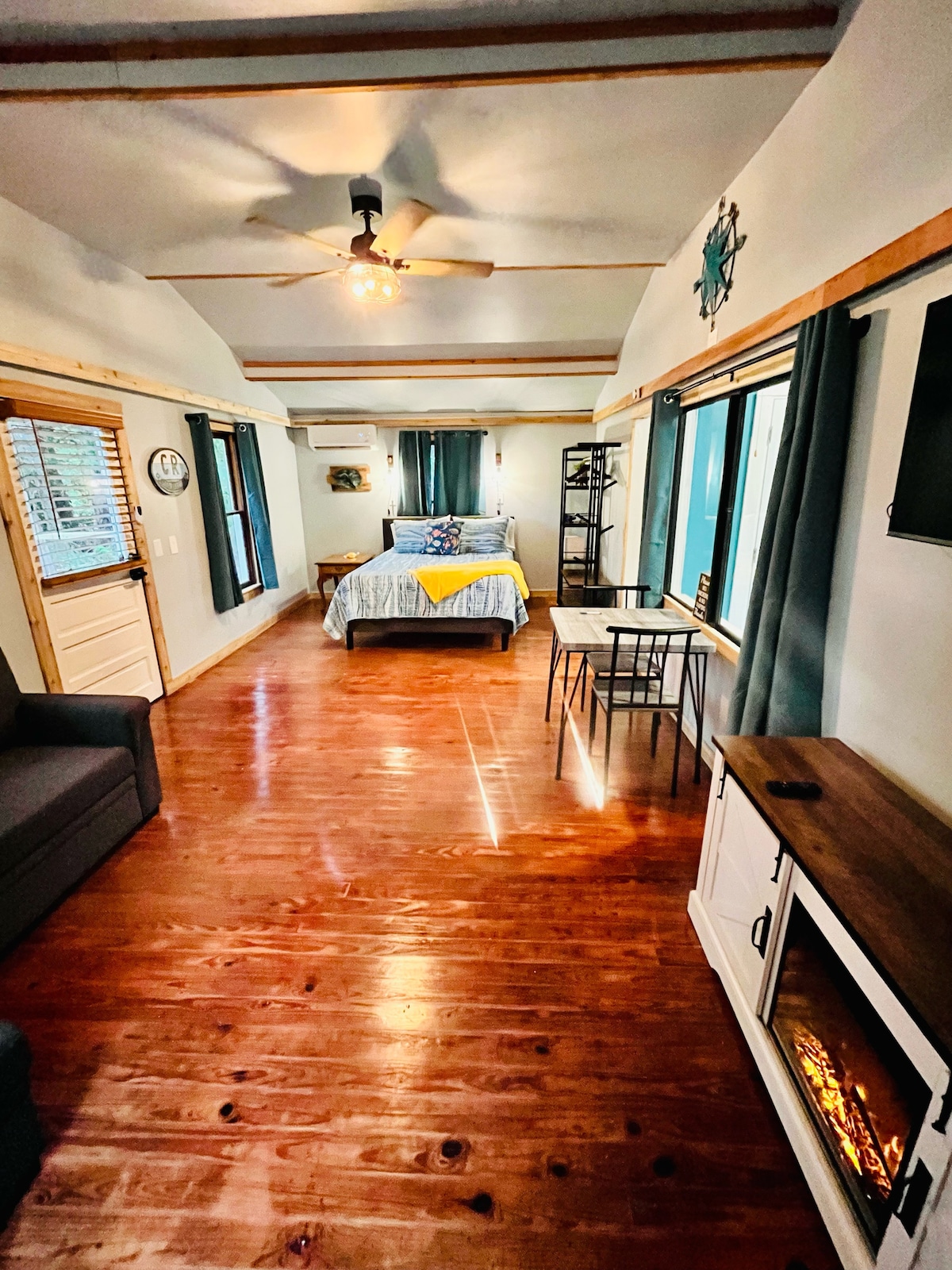 이 아름다운 숙소에서 가족, 친구들과 함께 휴식을 취하세요. 숙소 선착장에서 바로 카약 타기를 즐기세요. 완비된 주방에서 조리된 식사를 즐길 수 있는 사랑스러운 지붕이 있는 파티오가 있습니다. 두 개의 침실이 모두 딸려 있습니다. 추가 수면을 위해 라운지에 침대 겸용 소파가 있습니다. 반려견 (최대 2마리) 을 수용할 수 있지만 고양이는 허용되지 않습니다... 주인은 알레르기가 심합니다. 숙박당 75달러의 추가 반려동물 수수료가 부과됩니다.