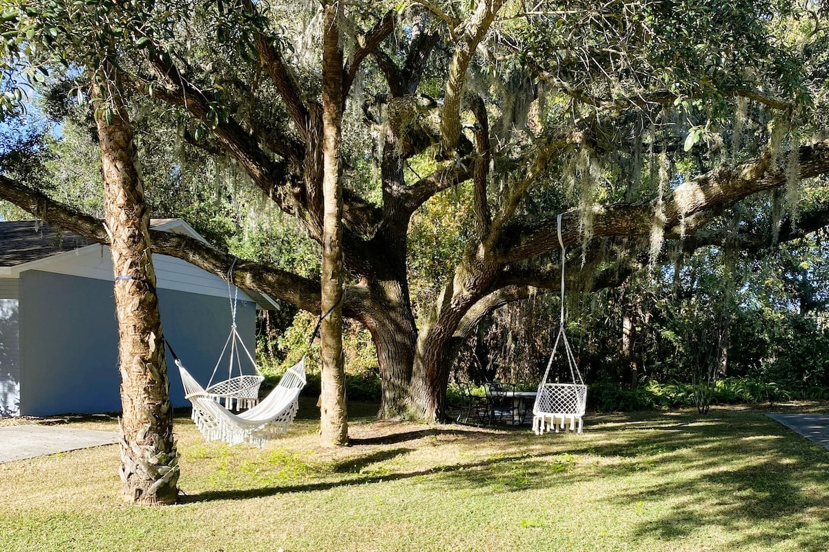 해안에서 영감을 받은 아늑한 2베드룸 숙소에 머물며 유명한 오젤로 트레일의 고요한 매력에 빠져보세요. 이곳에서는 야생 공작새가 자주 나타나며 매일 자연의 마법이 펼쳐집니다. 부드러운 강변에서 바비큐를 즐기거나, 편안한 베란다에서 별이 빛나는 하늘 아래에서 휴식을 취하거나, 야외 프로젝터로 영화를 감상하며 밤을 보내보세요. 완비된 주방, 와이파이, 스마트 TV로 집의 편안함을 즐겨보세요. 차로 금방 갈 수 있는 거리에 현지 온천과 공원이 있습니다. 여러분의 꿈꾸던 플로리다 여행이 여기 있습니다!