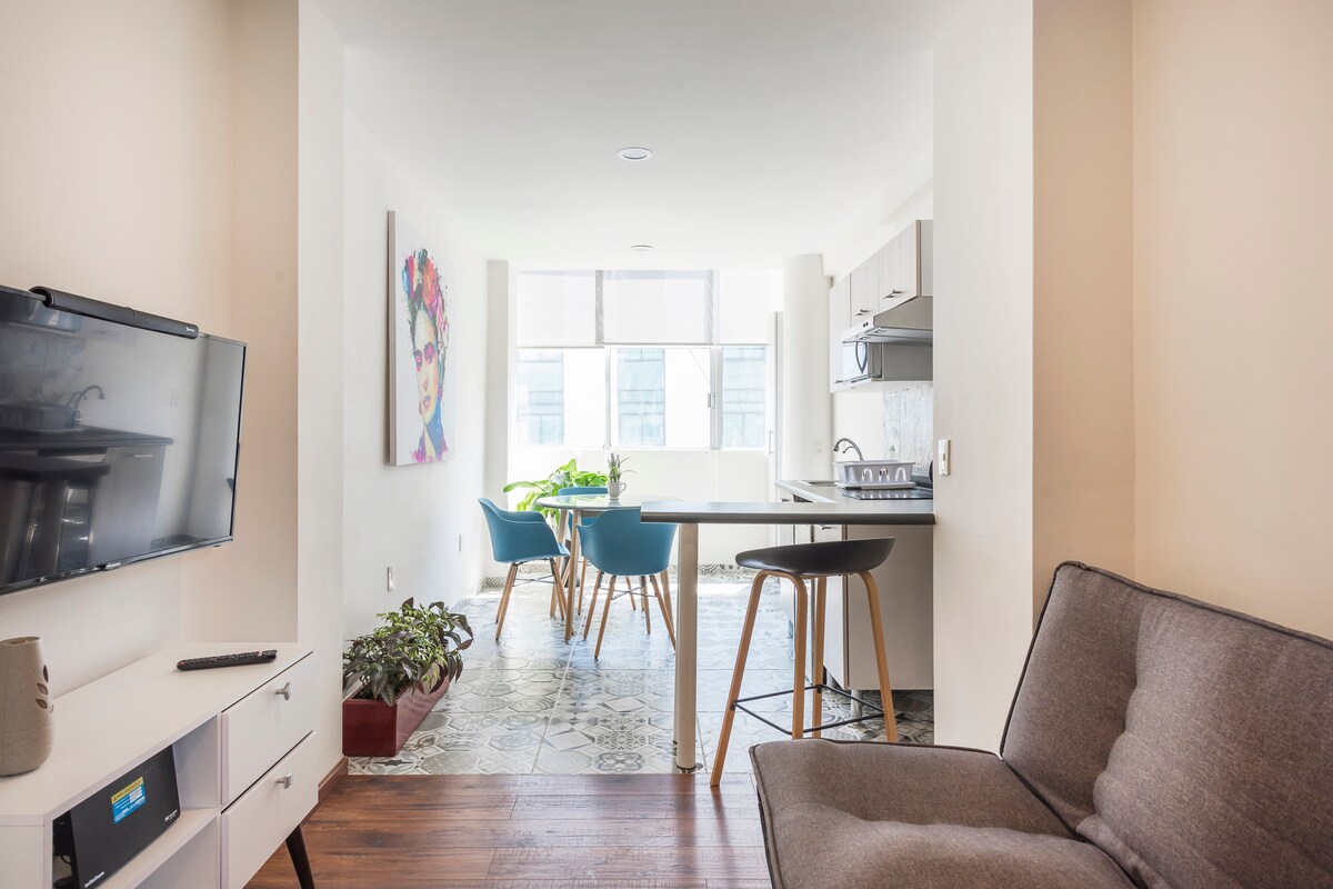 아늑하고 완비된 이 평화로운 스튜디오는 조용하고 나무가 늘어선 거리에 있는 유서 깊은 후아레스 지역에 있습니다. 카페, 서점, 박물관, 빈티지 가게, 고급 쇼핑몰이 있는 이 숙소는 라 콘데사, 라 로마, 센트로 히스토리코 근처에 있어 완벽한 위치에 있습니다. 멕시코시티에서 가장 활기찬 지역에 위치한 이 세련된 로프트는 편안한 휴식이나 원격 근무에 이상적입니다.