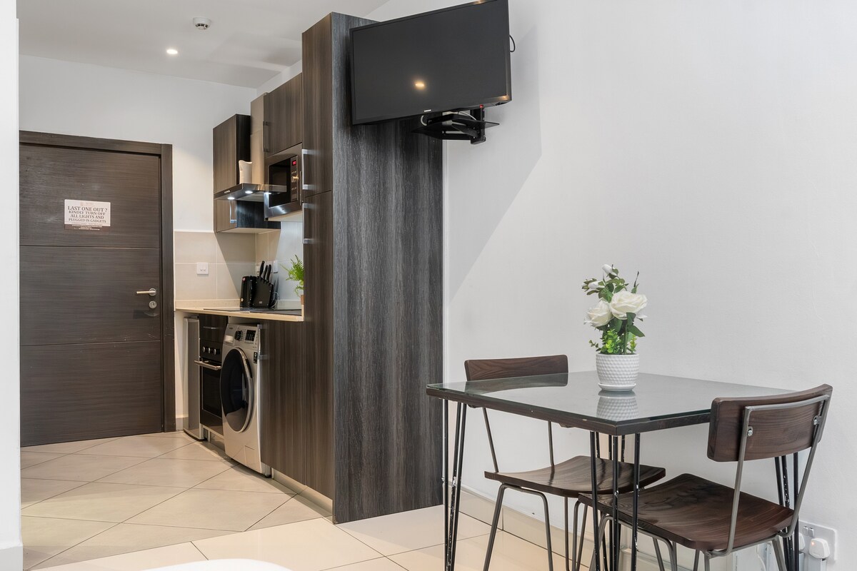 Looking for a calm, stylish space? This studio apartment lies in the heart of cosmopolitan Accra - Cantonments, with great access to the hottest spots and the best sights and sounds Ghana's city has to offer. With unlimited access to a pool, gym and cafe all within Embassy Gardens' residential complex, look no further. This hotel-style apartment comes with wifi, cable, a fully-fitted kitchen, laundry necessities and everything you need, ready to use...to make you feel right at home.