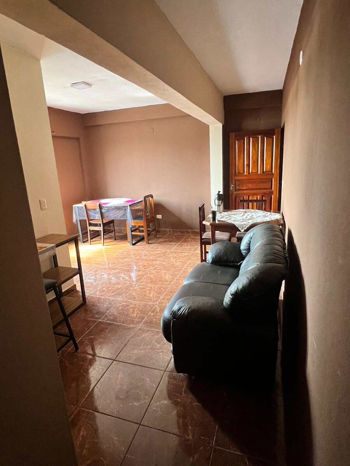 아파트는 매우 편안하고 도심에서 가깝고 해안가에 위치하며 포사다스-엔카르나시온 국경 통로에서 몇 미터 떨어져 있습니다. 다음과 같은 시설을 갖추고 있습니다: 1 가스레인지, 냉장고, 전기 포트, 전자레인지, 냄비 및 식기가 있는 주방. 테이블과 의자가 있는 넓은 식사 공간. TV, 탁자, 매우 편안한 의자가 있는 거실은 침대로 사용할 수 있습니다. 발코니에 나가면 독특한 전망을 감상할 수 있습니다. 파라나 강을 감상할 수 있는 발코니가 있는 침실 1개, 침구가 있는 더블 침대 1개. 세탁기, 빨랫줄, 세탁 욕조가 있는 세탁실.