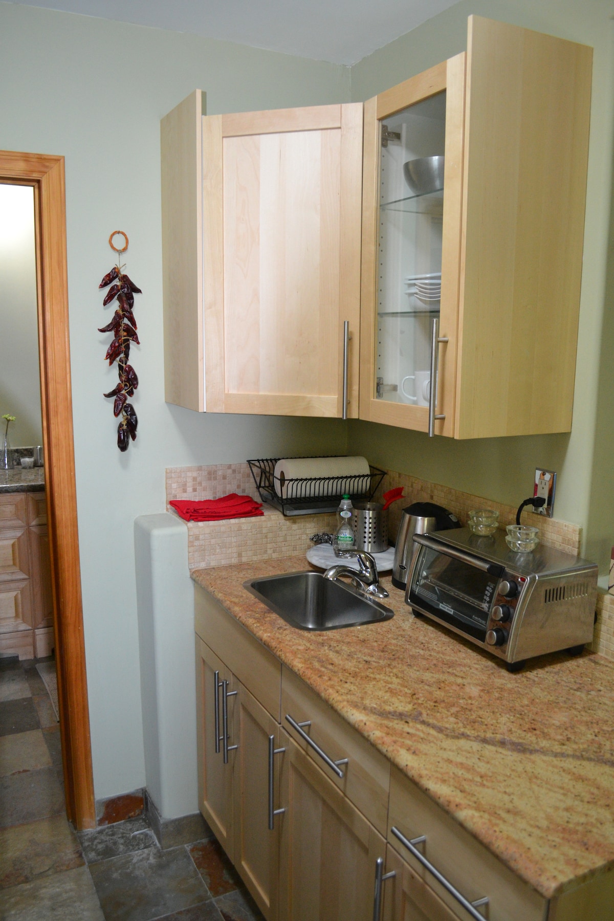 전용 출입구와 전용 사이드 마당/야외 좌석 공간이 있는 밝고 가구가 완비된 게스트 숙소입니다. 전용 에어컨/난방 장치, 주방 (버너 2개 휴대용 쿡탑/전자레인지/토스터 오븐이 있는 가벼운 요리용), 유기농 면 퀸사이즈 침대, 화강암 조리대, 풀사이즈 스테인리스 스틸 냉장고, 슬레이트 바닥. 욕실은 화강암, 더블 세면대, 슬레이트 샤워실입니다. 케이블이 구비된 55인치 TV와 와이파이가 포함되어 있습니다. 호스트는 짖는 개와 함께 활동적인 가족과 함께 숙소에 살고 있습니다.
