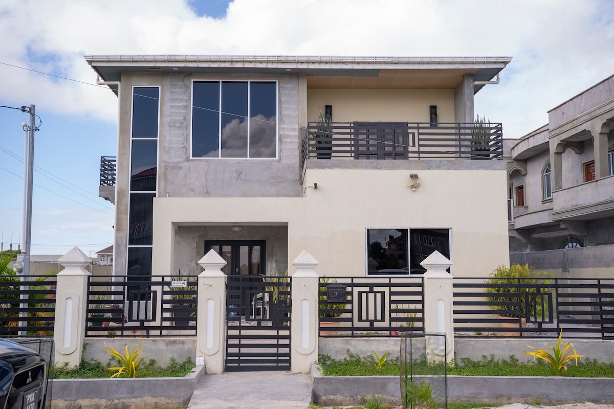 내 집처럼 편안한 숙소에 오신 것을 환영합니다. 조지타운 중심부에 위치한 새로 지어진 아늑하고 활기차며 현대적인 숙소입니다! 슈퍼마켓, 주유소, 쇼핑몰, 택시 및 기타 편의시설에서 몇 분 거리에 완벽하게 위치하고 있습니다. 문을 열고 들어서면 숨이 멎을 정도로 아름다운 곳입니다. 개방형 콘셉트 레이아웃 평면도로 구성되어 있습니다. 이 3베드룸 셀프 컨테인은 퀸 스위트, 50인치 스마트 TV, 알렉사, 온수 및 냉수, 옷장으로 구성되어 있습니다. 이 숙소에는 최신 편의시설이 포함되어 있습니다. 오글 공항에서 10분, CJIA에서 차로 50분 거리에 있습니다.