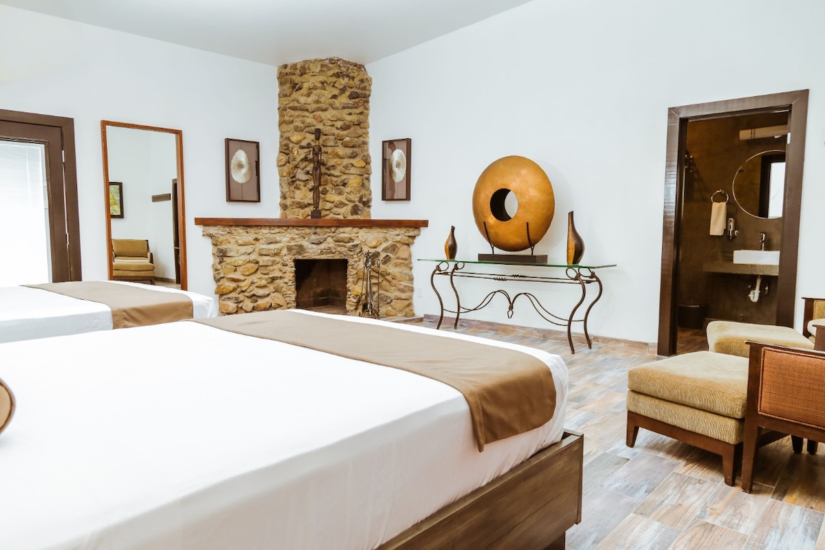 Te encantará la decoración elegante de este encantador lugar para hospedarte. disfruta de magicos atardeceres desde el jacuzzi en el balcon de tu habitacion, consta de una cama king size y un sillon de dia, cocineta, regadera de lluvia, tv con internet. Puedes obtener un fogatero de Gas en el balcón por 10 dlls, puedes agregar a tu mascota en la reserva, tiene costo adicional. El desayuno incluido es en restaurante Don Tomás, a 5 minutos del hotel