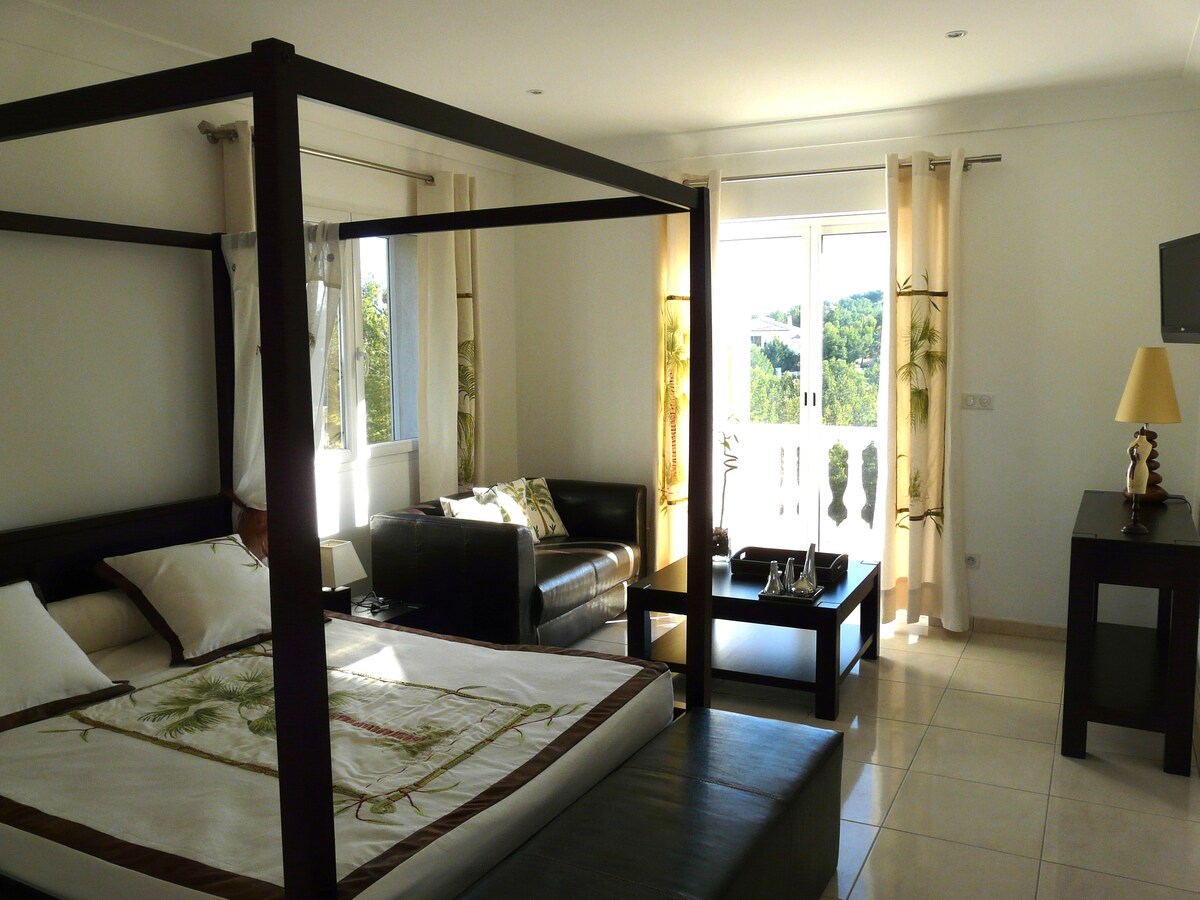 ์จ ๊ฐ์กฑ์ด ํธ์ํ๊ฒ ๋จธ๋ฌผ ์ ์๋ ํํ๋ก์ด ์์์ ๋๋ค. ํํฐ ๋ฉ์ ์ ํญ๊ตฌ ํ๊ฐ์ด๋ฐ์ ์์นํ๊ณ ์์ด ๋ฐ๋ค์ ์จ ๋งํ๋ ์ ๋ง์ ๊ฐ์ํ์ค ์ ์์ผ๋ฉฐ ๋ช ๊ฑธ์ ๊ฑฐ๋ฆฌ์ ๋ฌผ์ ๋ฐ๋ก ์ ๊ทผํ ์ ์์ต๋๋ค. ํธ์ํ๊ณ ์์ด์ปจ์ด ์ค์น๋ ์์์์ ๋ฉ์ง ์ ๋ง์ ์ฆ๊ธฐ์ธ์. ๋ง๋ฅด์ธ์ , ์นด๋ฆฌ ๋ฅด ๋ฃจ์, ์์ธ ๋  ํฝ์์ 15~20๋ถ ๊ฑฐ๋ฆฌ์ ์์ผ๋ฉฐ, ๋ง๋ฅด์ธ์ ๊ณตํญ์์ 30๋ถ ๊ฑฐ๋ฆฌ์ ์์ต๋๋ค. ๋์ค๊ตํต: ์ ํ ๋ฐ ๊ธฐ์ฐจ. ํํฐ ๋, ํตํ ์ฆ๋ช ์๋ฅผ ์ํด ์ฐจ๋ ๋ฑ๋ก์ด ํ์ํฉ๋๋ค.